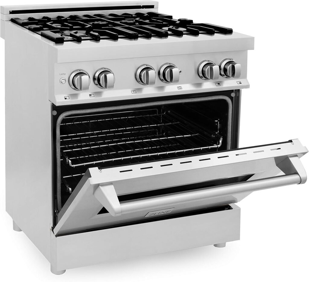 ZLINE 30 Inch 4.0 Cubic Foot Stainless Steel Dual Fuel Range with 4 Burner Porcelain Cooktop, Gas Stove, Cast Iron Grill, and Electric Convection Oven