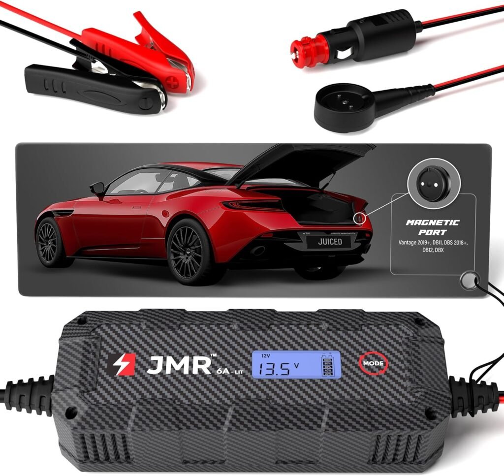 JMR Battery Charger for Aston Martin DB11 DBX Vantage DBS DB12 Trickle Charger Conditioner Maintainer (Magnetic Port, Add Lithium Mode)