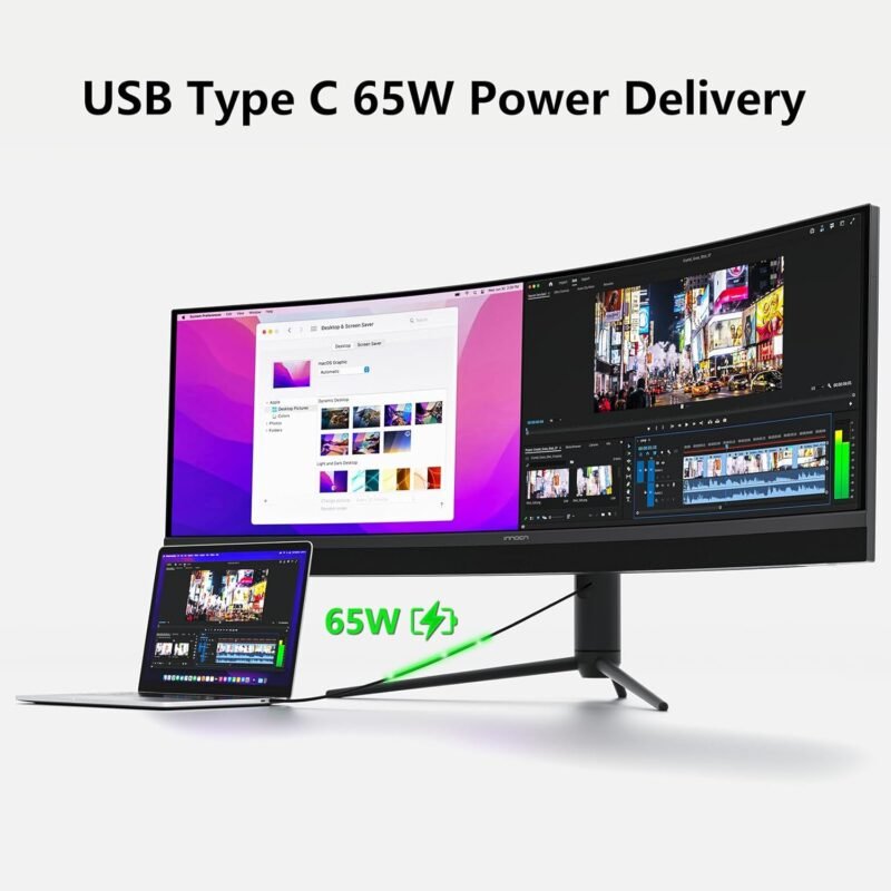 INNOCN 45C1R 45 Inch 5120 x 1440p Ultrawide Curved Gaming Monitor, R1500, HDR400, USB Type-C 90W Power Delivery, PIP/PBP, Built-in Speaker, Height Adjustable, Black