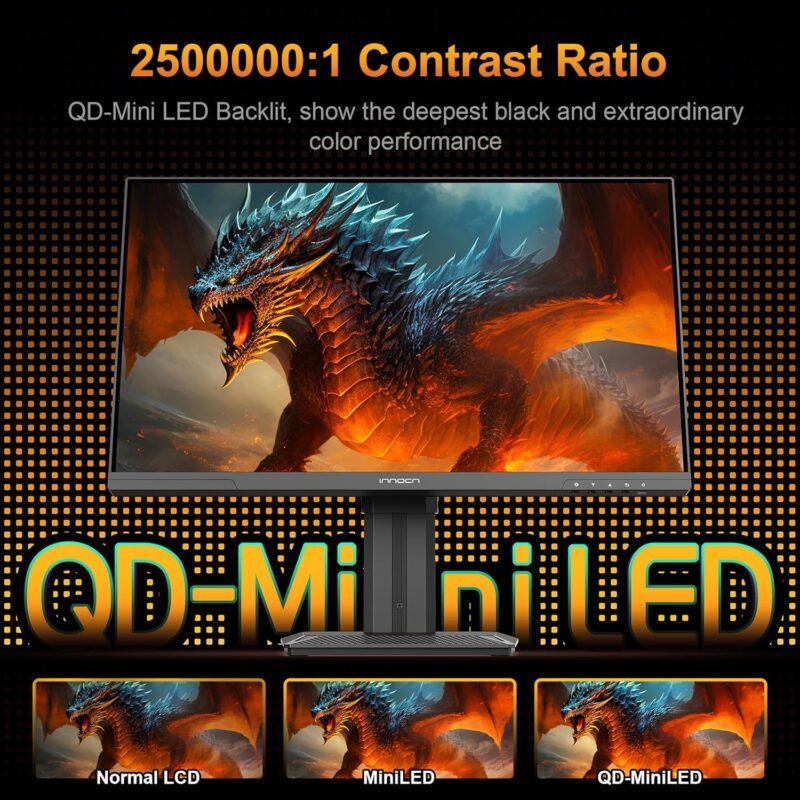 INNOCN 24.5″ 2K QHD 2560 x 1440P 240Hz Monitor, Gaming Console Ready, Mini-LED Precisely Local Dimming, Monitor for Mac, HDMI 2.1, DP 1.4, Height Pivot Adjustable Stand, Black – 25M2S