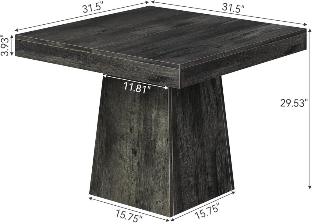 LITTLE TREE Dining Table for 4 People, 31.5-Inch Square Small Kitchen Table, Farmhouse Dinner Table with Sturdy Pedestal Base for Restaurant, Dining Room, Living Room, Grey