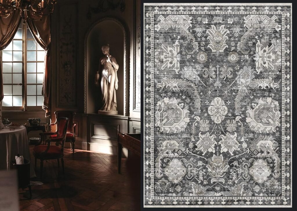 RUGSURE Washable Area Rugs – Perfect for Living Room, Bedroom, Kids Room, Nursery – Stain & Water Resistant Non-Slip, Pet & Child Friendly, Vintage Tribal Area Rugs (Grey, 8′ x 10′)