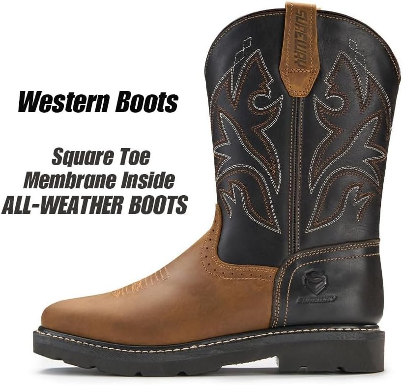 SUREWAY Cowboy Boots For Men – Mens Square Toe Western Boot,Oil/Slip Resistant,Durable Classic Pull on 10 Inch Wellington Boots – Soft Toe Full Grain Leather Work Boots