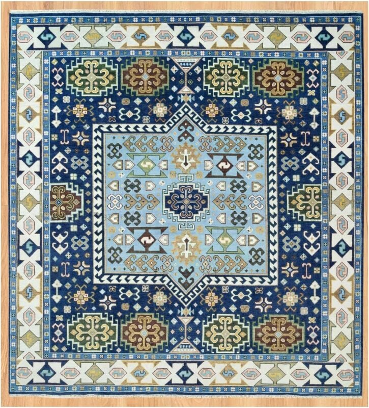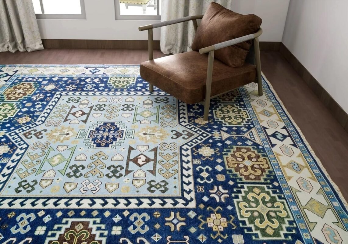Tortania Area Rug Living Room Rugs – 8×10 Washable Boho Rug Vintage Oriental Distressed Farmhouse Large Thin Indoor Carpet for Living Room Bedroom Under Dining Table Home Office – Cream Blue