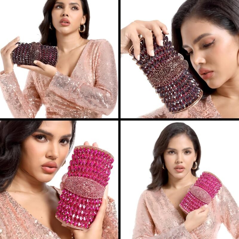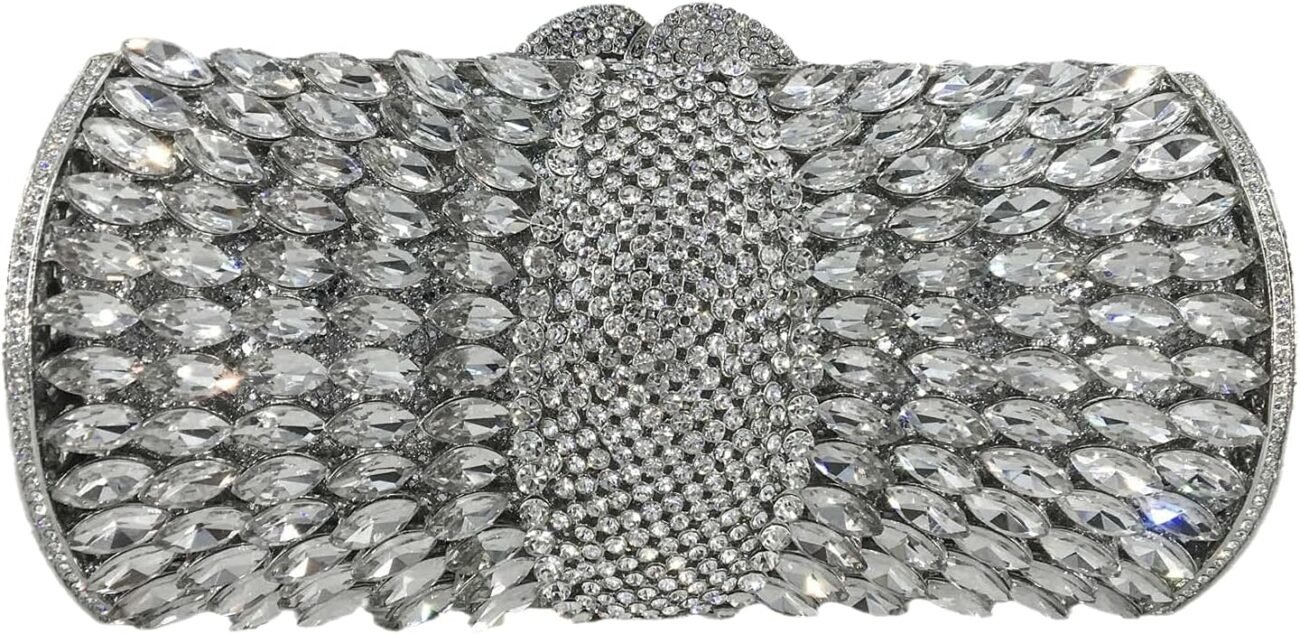 Boutique De FGG Mini Pearl Clasp Crystal Clutch Purses for Women, Evening Bags Wedding Handbag, Party Rhinestone Clutch Bag