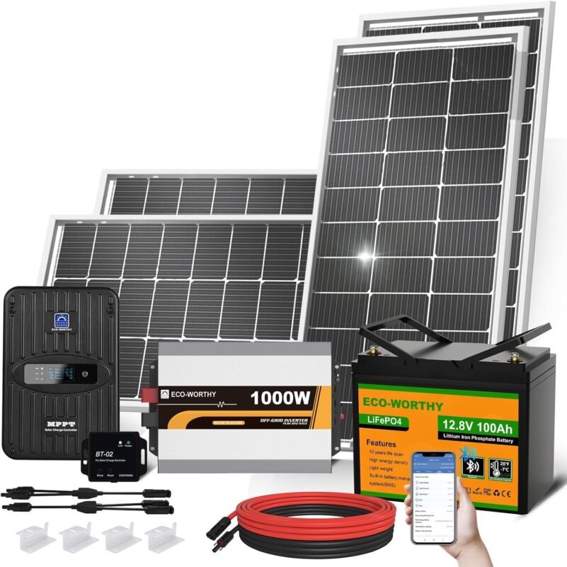 ECO-WORTHY 1.6KWH Complete Solar Panel Kit 400W 12V for RV Off Grid: 400W Solar Panels + 40A MPPT Charge Controller +12V 100Ah Lithium Battery + Solar Power Inverter + Bluetooth Module