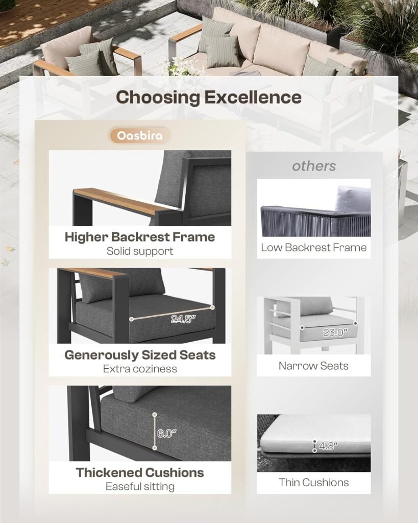 Aoxun Aluminum Outdoor Patio Furniture Set, 7 Seats Outdoor Sectional with Coffee Table, Patio Conversation Sets with Upgraded Armrests and Cushions for Backyard, Garden and Poolside