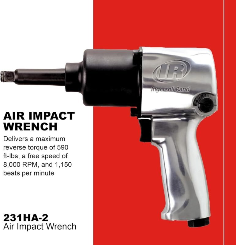 Ingersoll Rand 231HA-2 1/2″ Air Impact Wrench, 2″ Ext Anvil, Super Duty, 600 ft-lb Torque, Friction Ring Retainer, Pistol