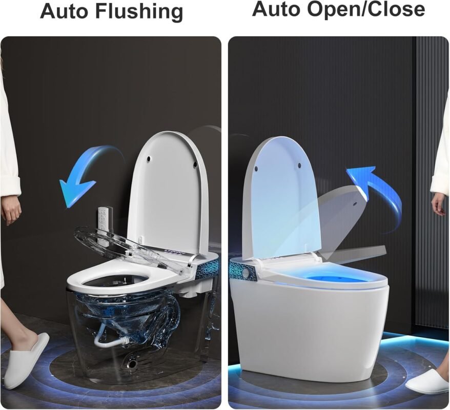 Smart Toilet with Bidet Built in, Elongated Bidet Toilet with Auto Soft Open/Close, Auto Flush, One Piece Toilet with Warm Wash & Dryer, Heated Seat, LED & Night Light, Self-Cleaning, Full/Half Flush