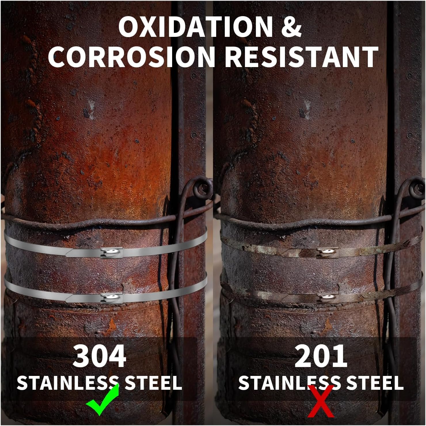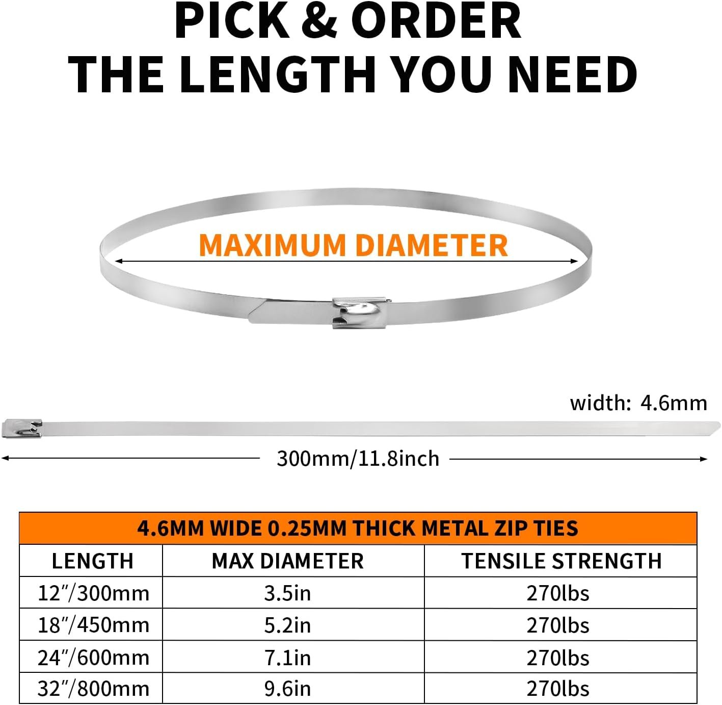 12 inch Stainless Steel Cable Zip Ties 100Pack 304 Metal Cable Ties with 270lbs Tensile Strength Heavy Duty Zip Ties for Farms Pipes Roofs Workshop Outdoor Fence Use