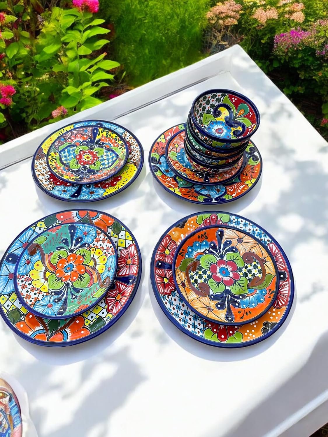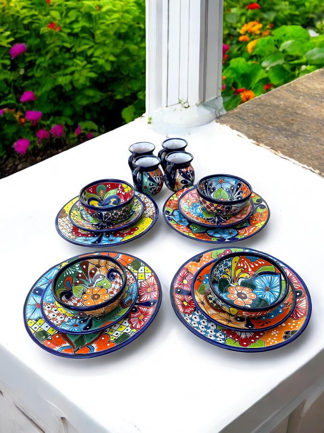 3 reviews for 16-Piece Talavera Dinnerware Set | Hand-Painted Mexican Pottery with 4 Large 11.5” Plates, 4 Small 8” Plates, 4 Bowls, and 4 Mugs | Unique, Artisan-Made Ceramic Dish Set