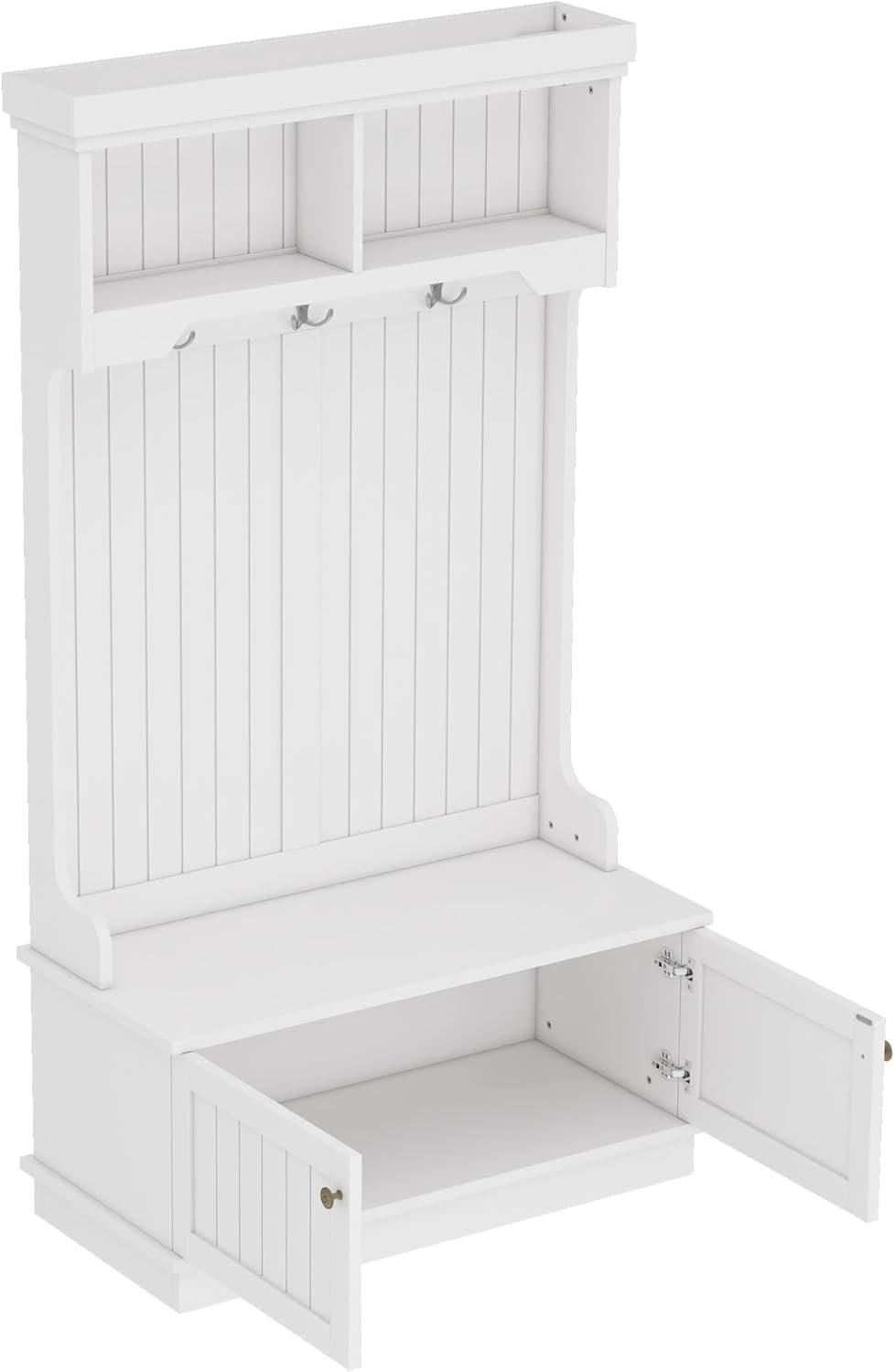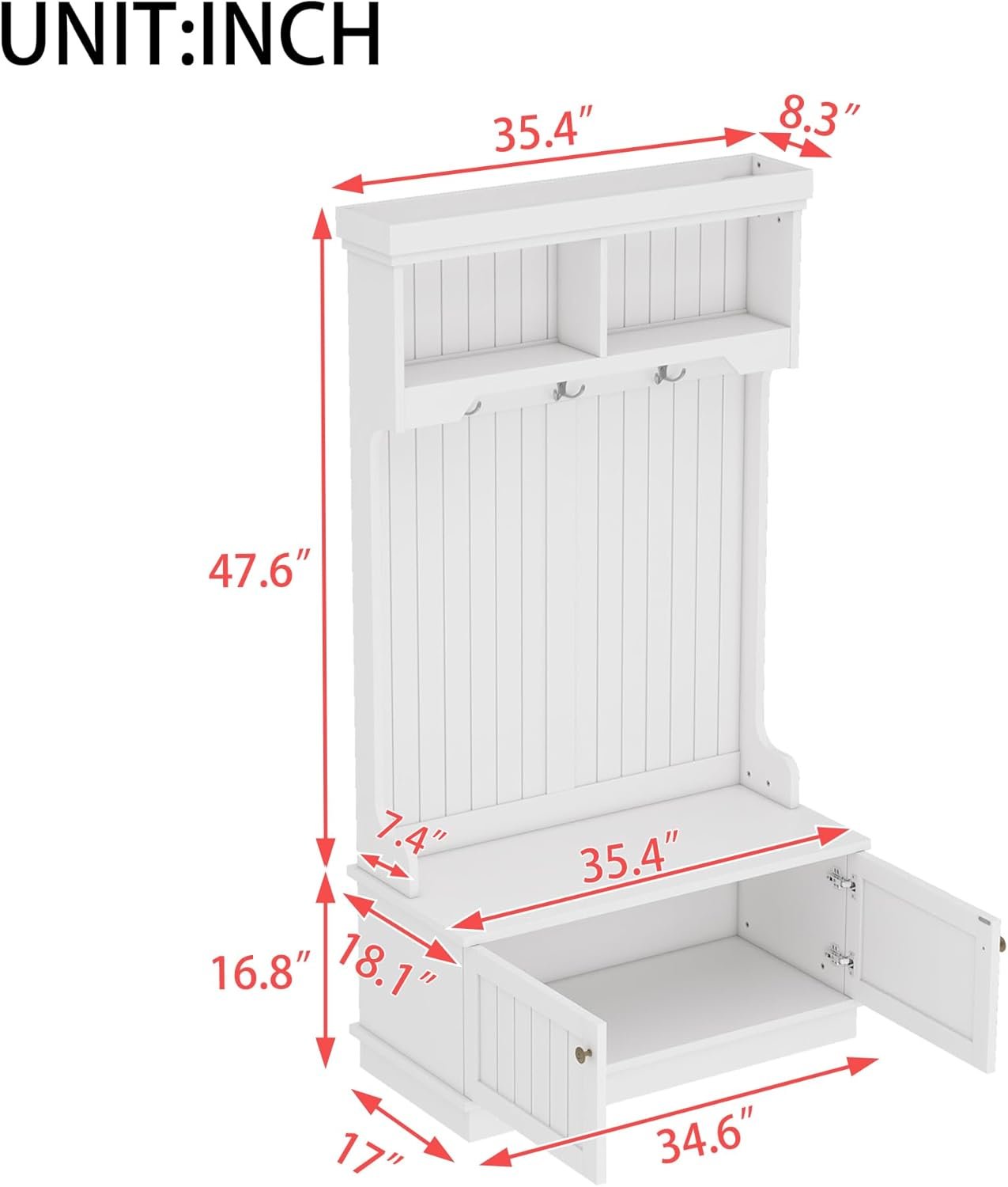 8 reviews for 35.5 inch Hall Tree with Bench and Shoe Storage Shelf, Wood Hall Tree with 4 Hooks/Mudroom Bench with Storage and Hooks, Wood Hall Trees for Entryway, Hallway, Living Room, White