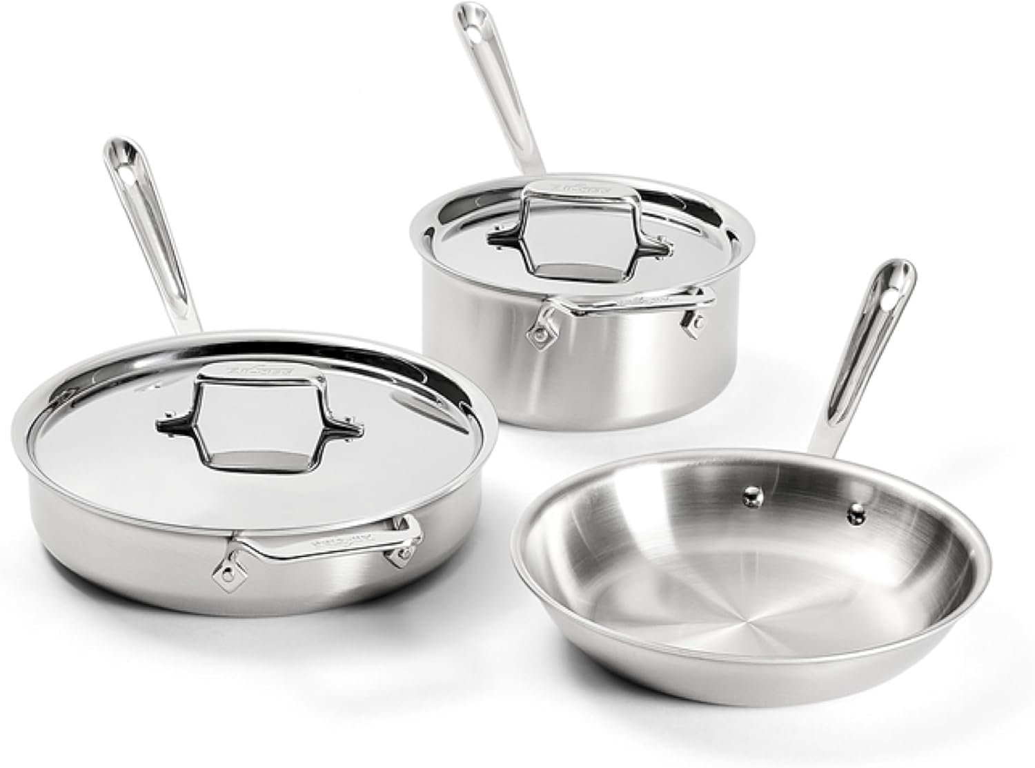 All-Clad D5® Stainless Steel Core 5 Piece Cookware Set- Made in USA- The Upgrade for Supremely Even Heat- Includes Frying Pans, Saucepan, Sautépan -Oven Safe & Induction Compatible