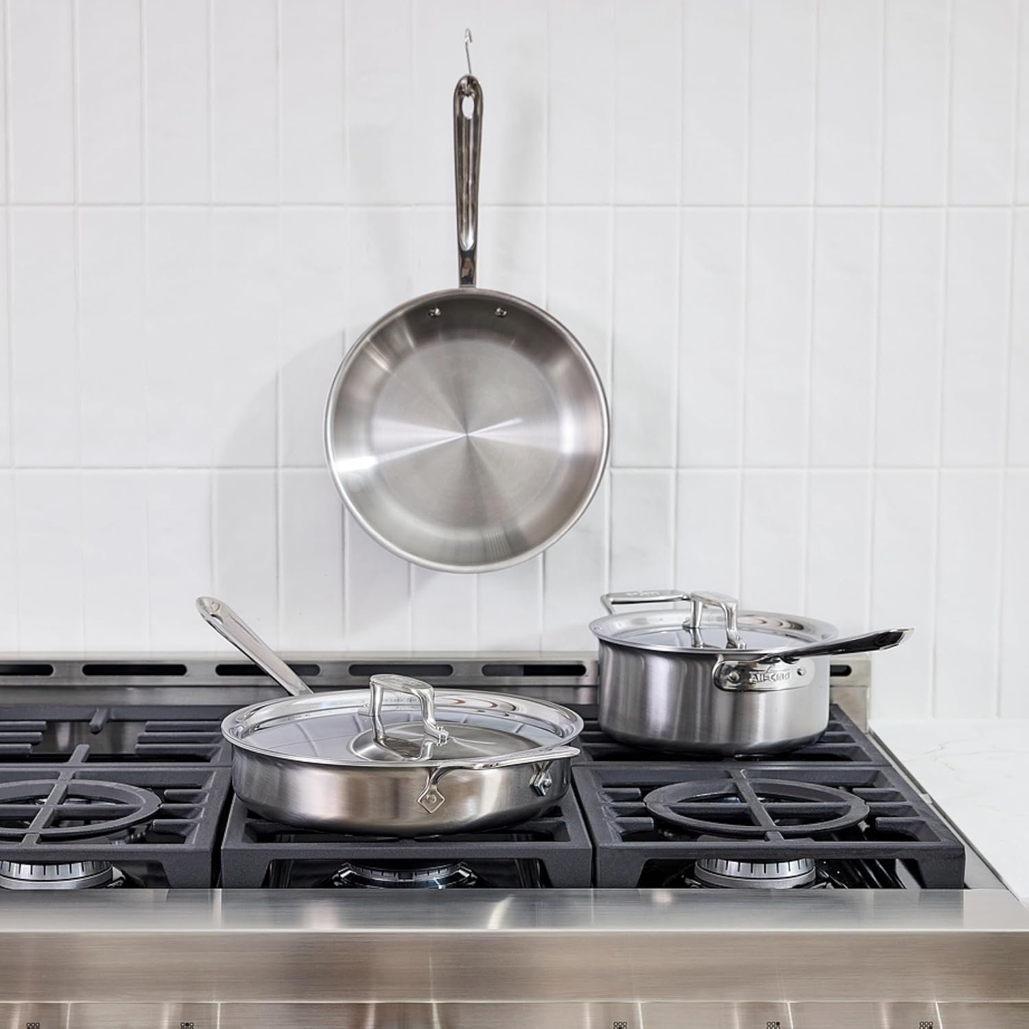 10 reviews for All-Clad D5® Stainless Steel Core 5 Piece Cookware Set- Made in USA- The Upgrade for Supremely Even Heat- Includes Frying Pans, Saucepan, Sautépan -Oven Safe & Induction Compatible