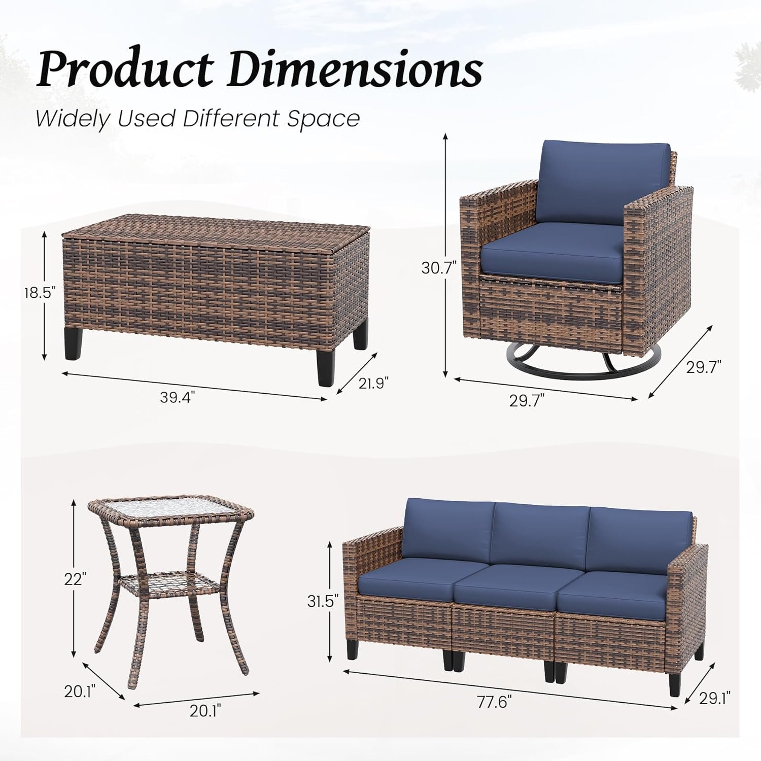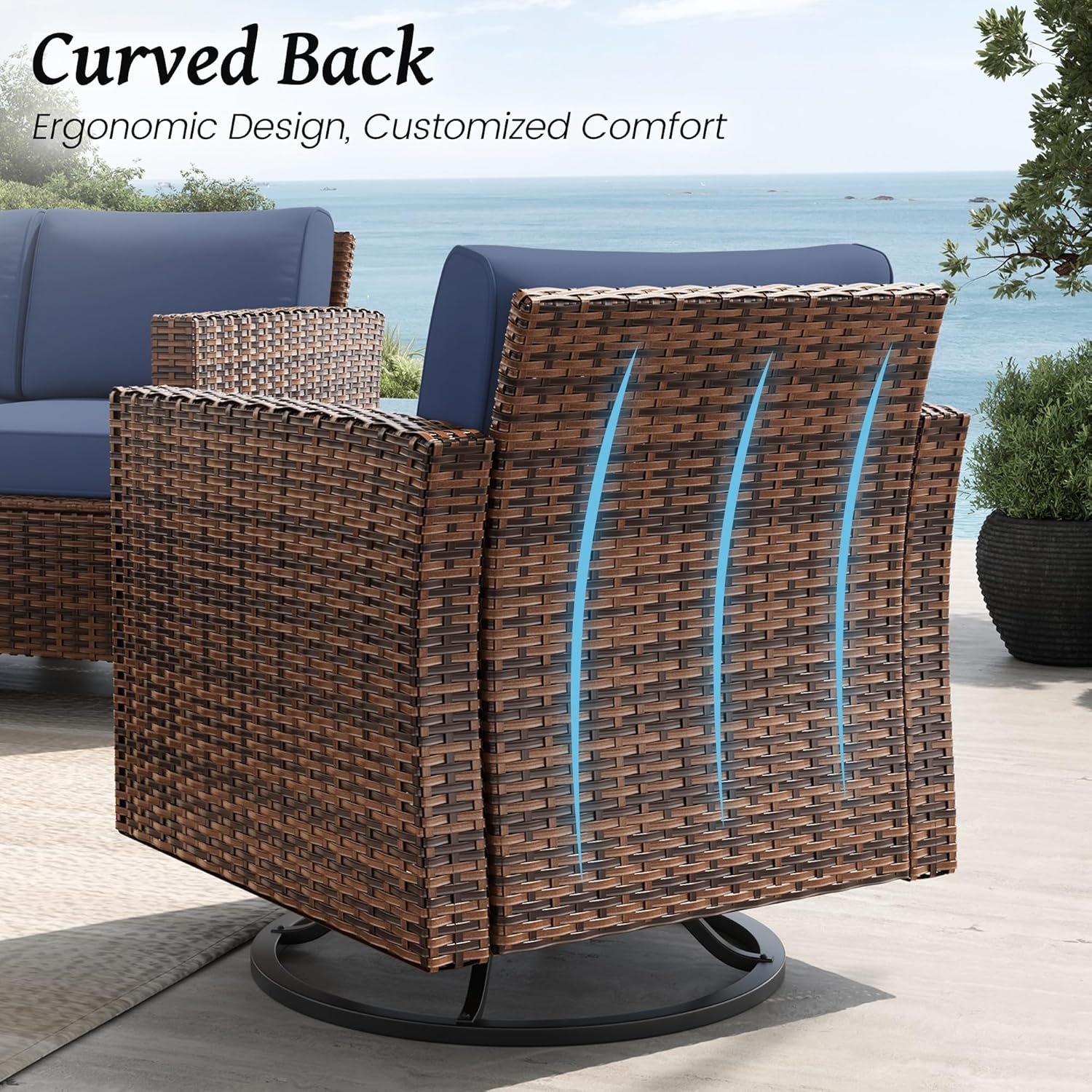 8 reviews for Amopatio Patio Furniture Set, Wicker Outdoor Sectional Sofa Sets, 7 Pieces Rattan Conversation Set with Storage Table, Swivel Chairs Include Waterproof, (Navy)