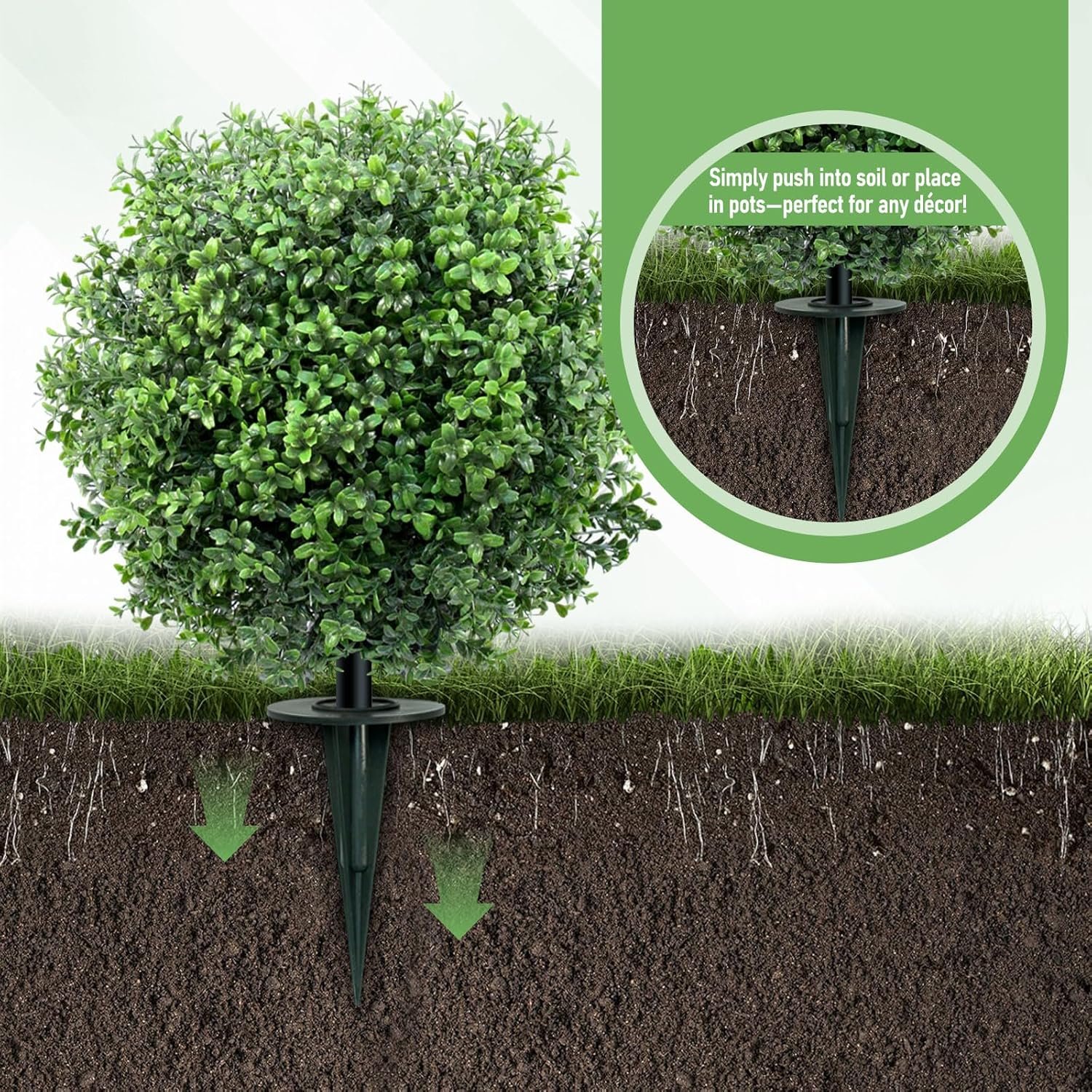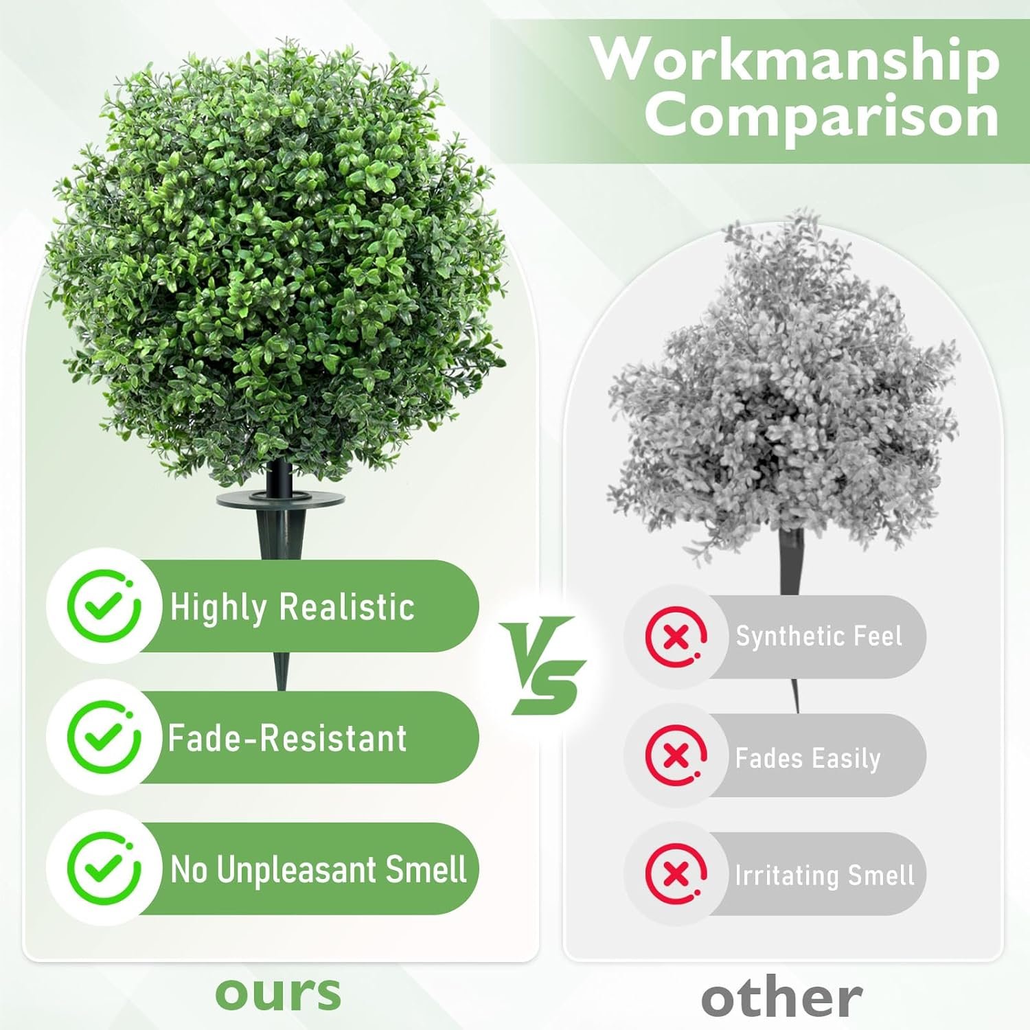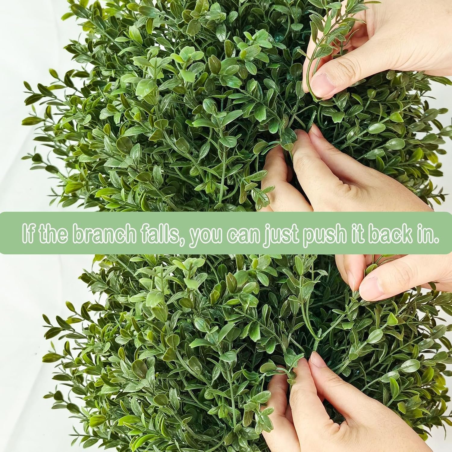【Zero-Maintenance Greenery】 Unlike high-maintenance faux plants, boxwood plants for outsides stay vibrant all year. No watering/pruning required. Just occasional leaf fluffing to keep them looking natural. With topiary balls artificial outdoor set of 2, you can make a stunning visual impact, making them a perfect choice for permanent landscape features.