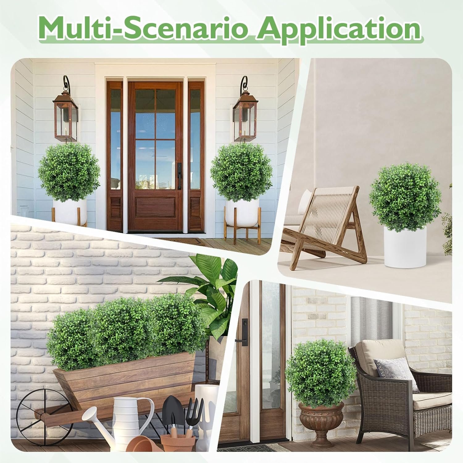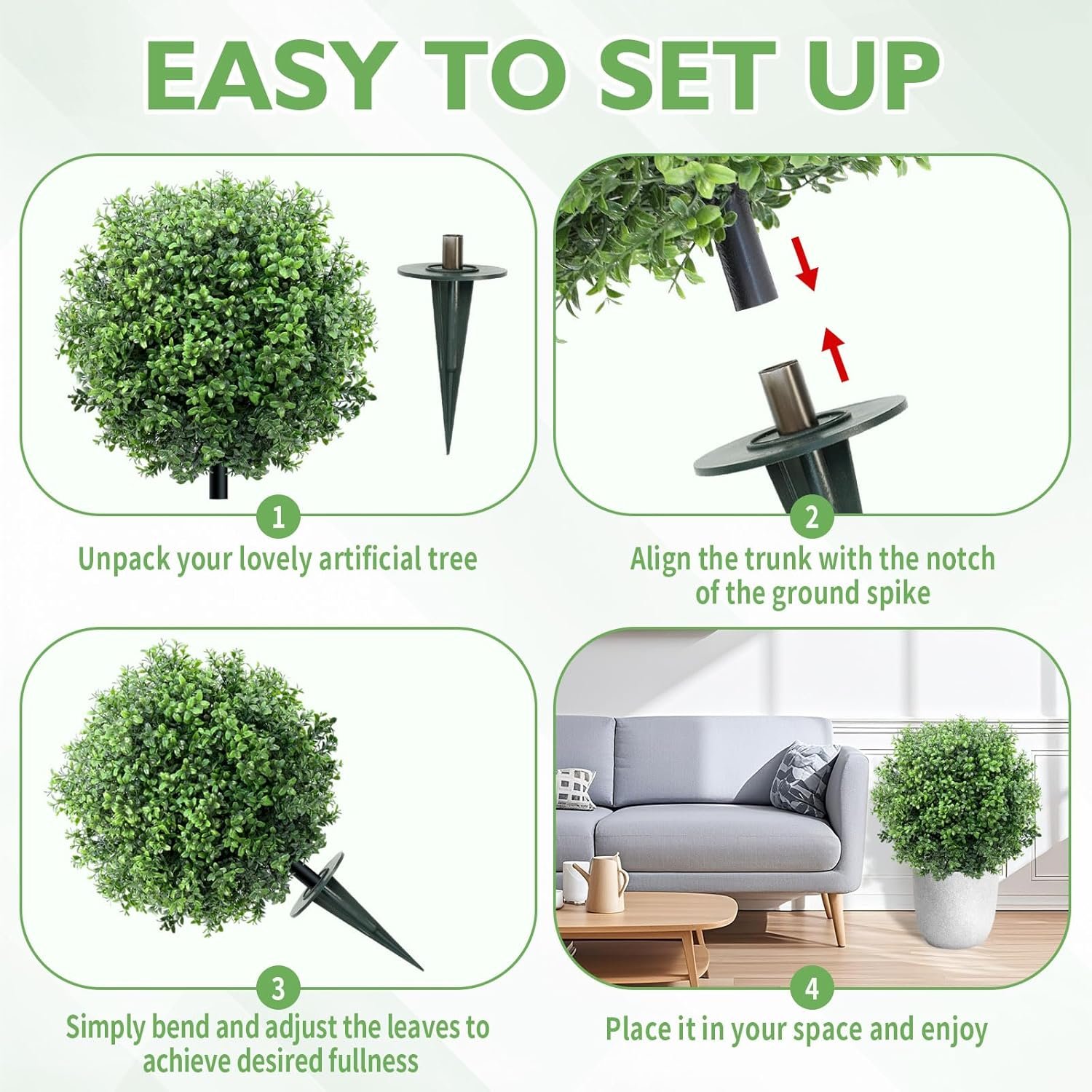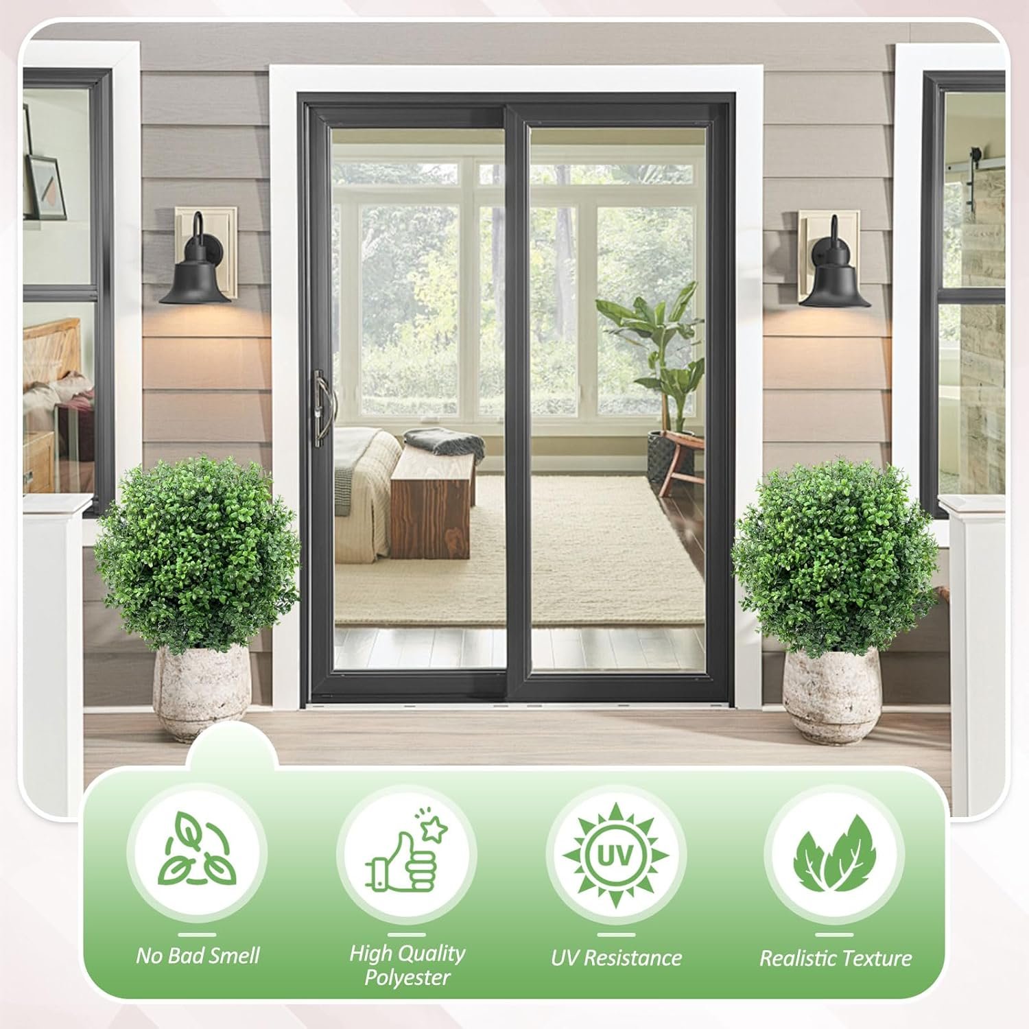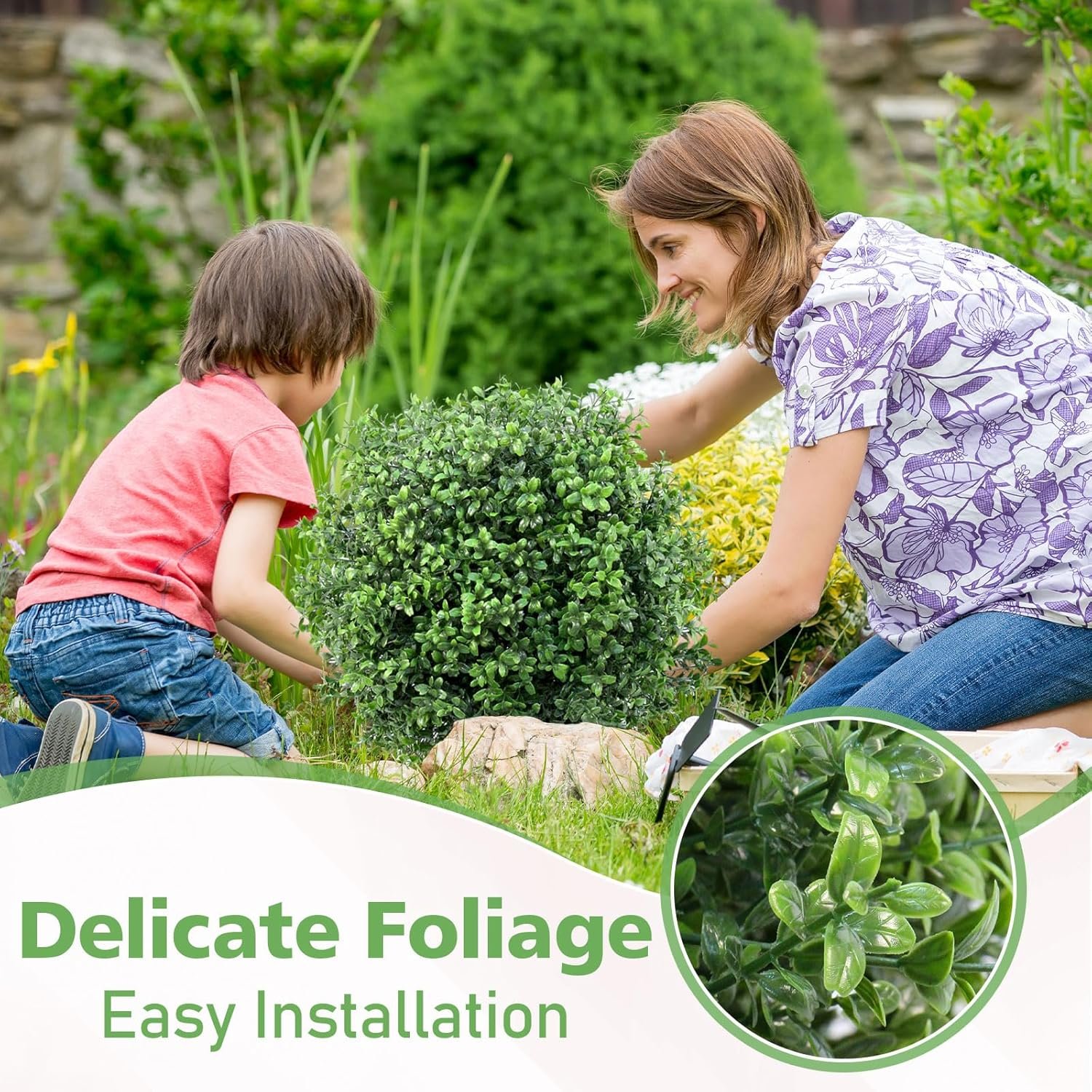 【Zero-Maintenance Greenery】 Unlike high-maintenance faux plants, boxwood plants for outsides stay vibrant all year. No watering/pruning required. Just occasional leaf fluffing to keep them looking natural. With topiary balls artificial outdoor set of 2, you can make a stunning visual impact, making them a perfect choice for permanent landscape features.