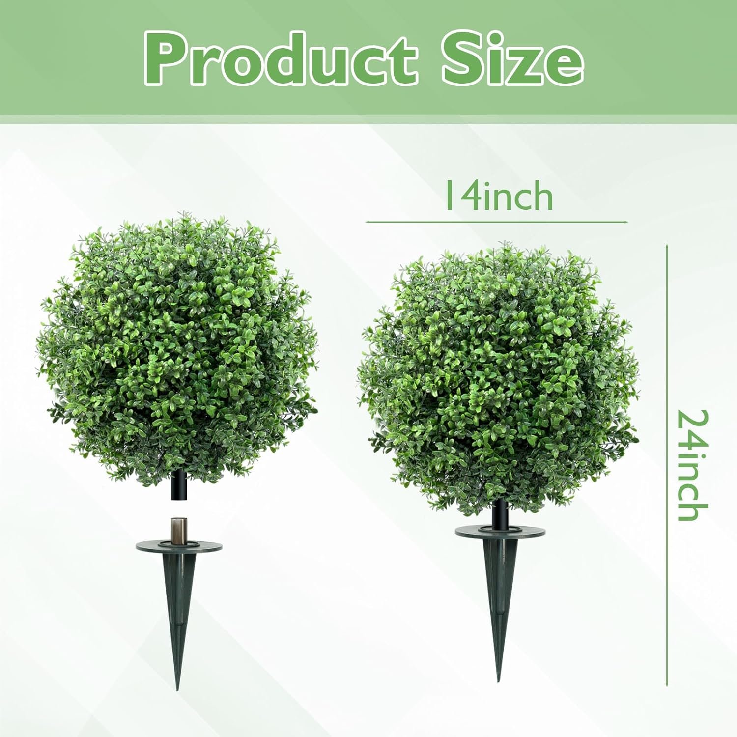 Artificial Boxwood Topiary Ball Trees, 24″ Faux Outdoor Boxwood Tree with Spike Set of 2, UV Resistant Faux Shrubs Fake Evergreen Plants for Indoor, Garden, Front Porch, Patio Decor