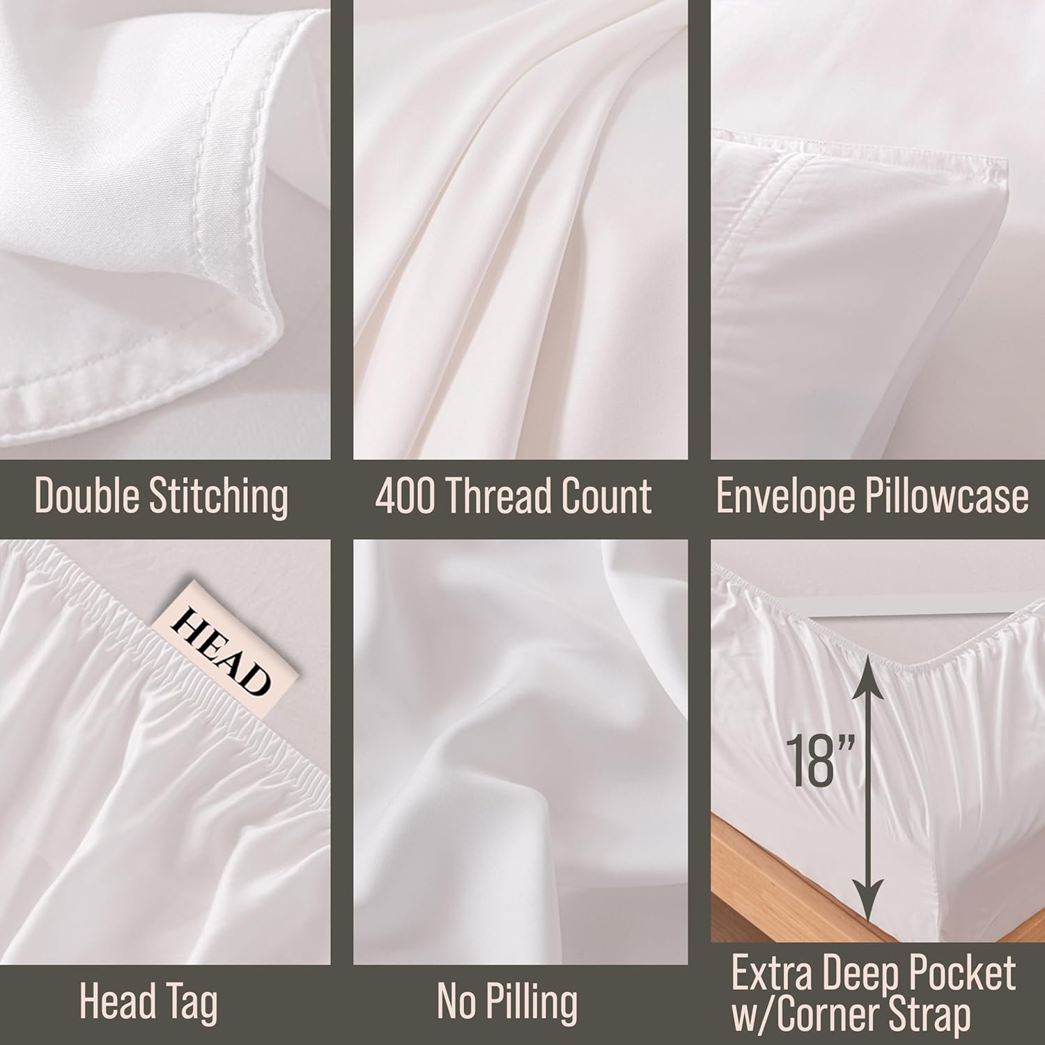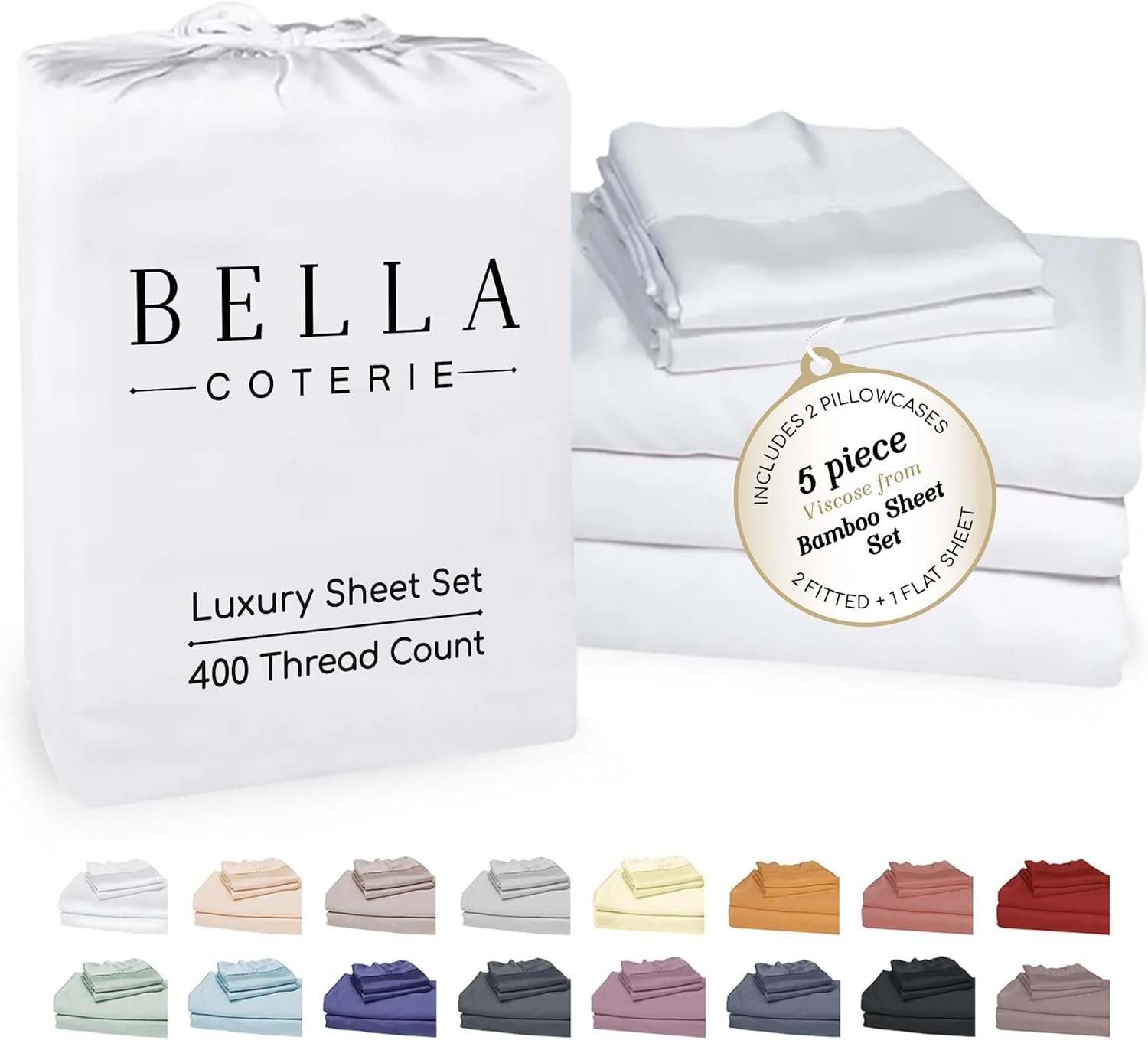 13 reviews for Bella Coterie Luxury Bamboo Viscose Split King Size Sheet Set | 2 Fitted Sheets for Sleep Number & Adjustable Beds | 100% Organically Grown | Cooling & Ultra Soft | 18” Deep Pocket [White]