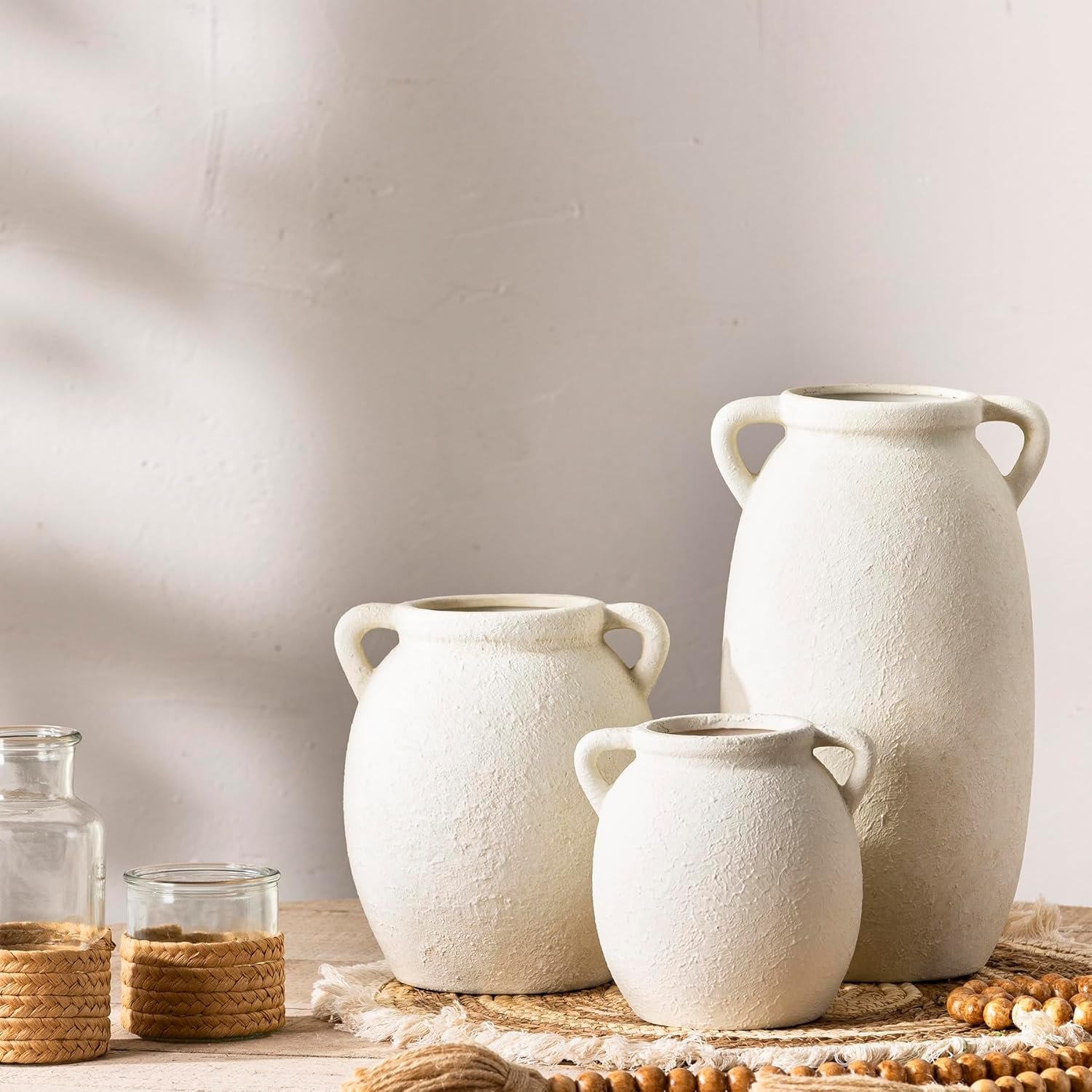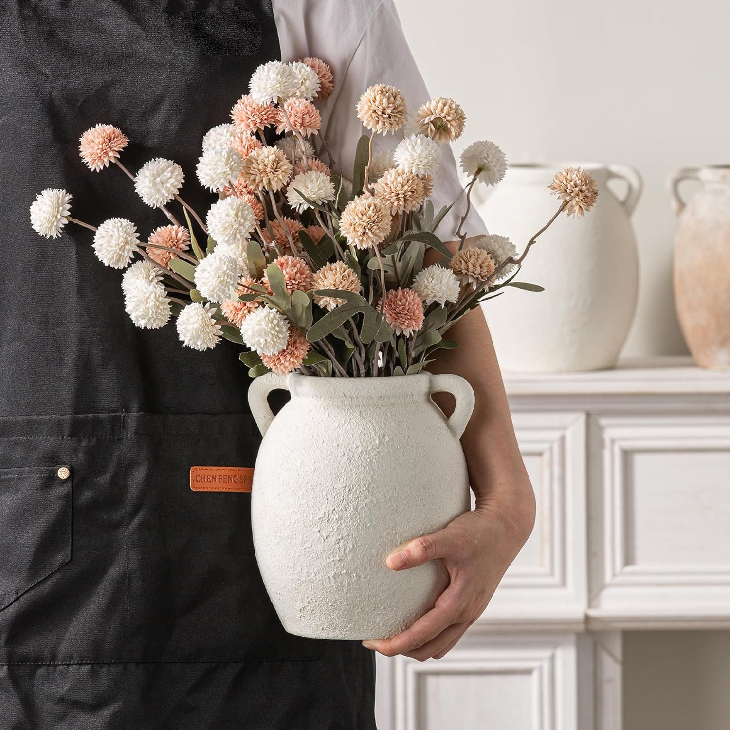 Ceramic Flower Vase 7.6 inch Farmhouse Rustic Vase Decorative Pottery Terracotta Vases for Home Decor Table Mantle Fireplace Living Room Bathroom Wedding Centerpiece (White-Upgraded)
