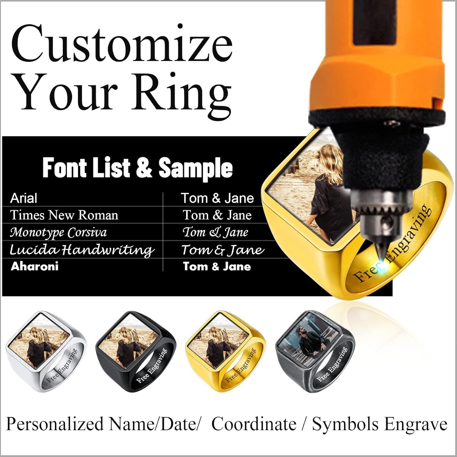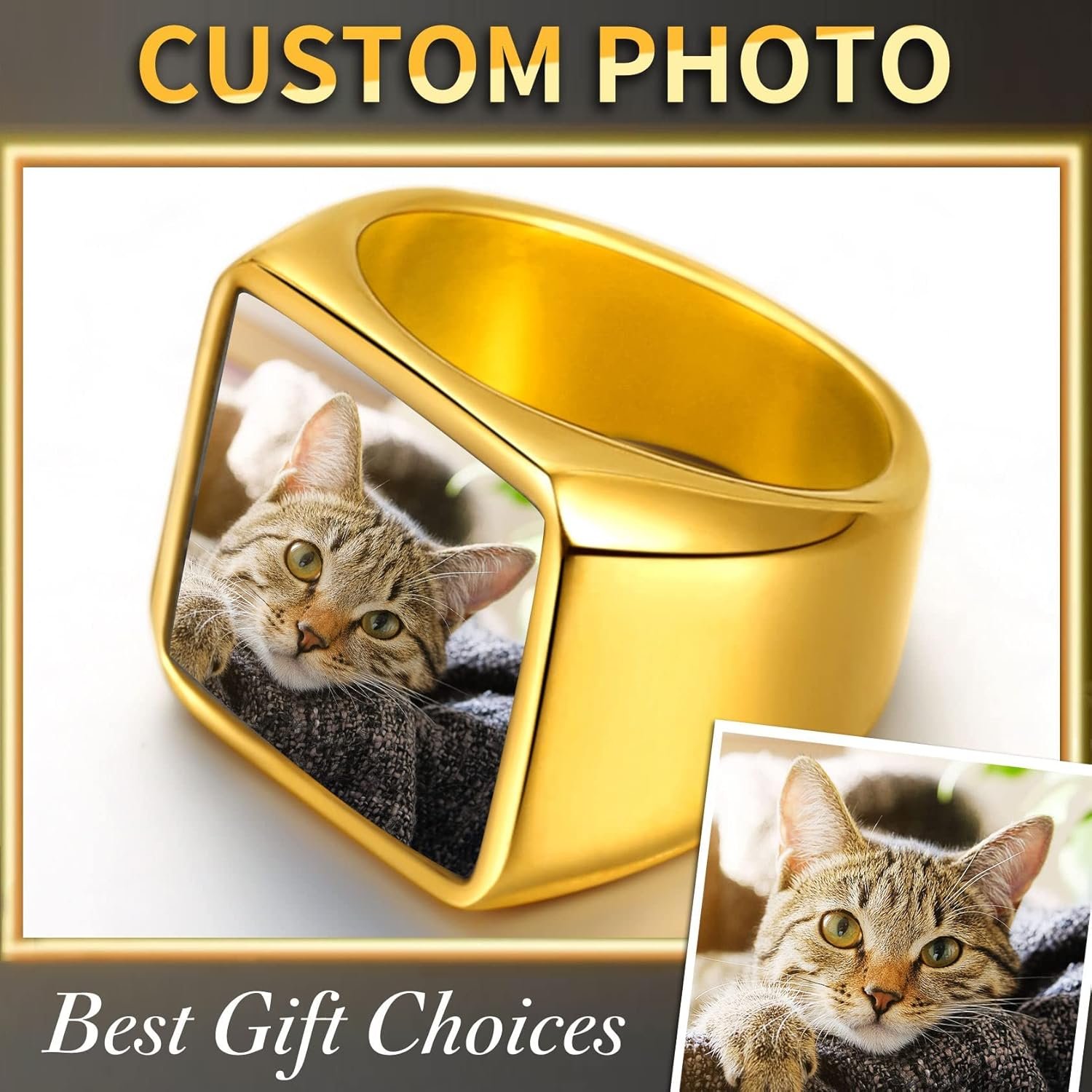 9 reviews for ChainsHouse Signet Rings Solid Polished Stainless Steel Biker Ring for Men Women, 316L Stainless Steel/18K Gold/Black Metal Plated, Text Engraving/Photo Custom, Size 7 to 14, Send Gift Box