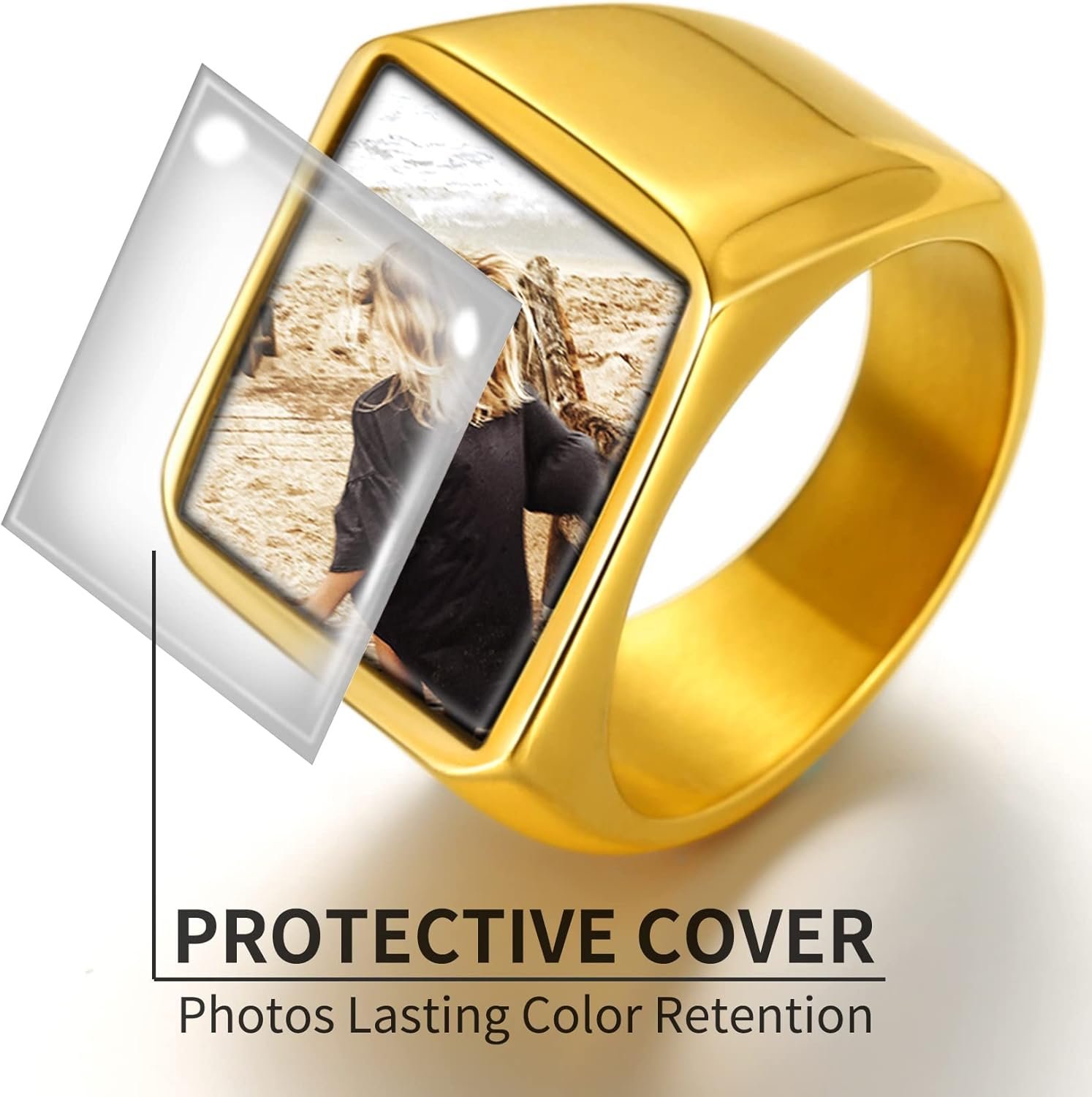 ChainsHouse Signet Rings Solid Polished Stainless Steel Biker Ring for Men Women, 316L Stainless Steel/18K Gold/Black Metal Plated, Text Engraving/Photo Custom, Size 7 to 14, Send Gift Box