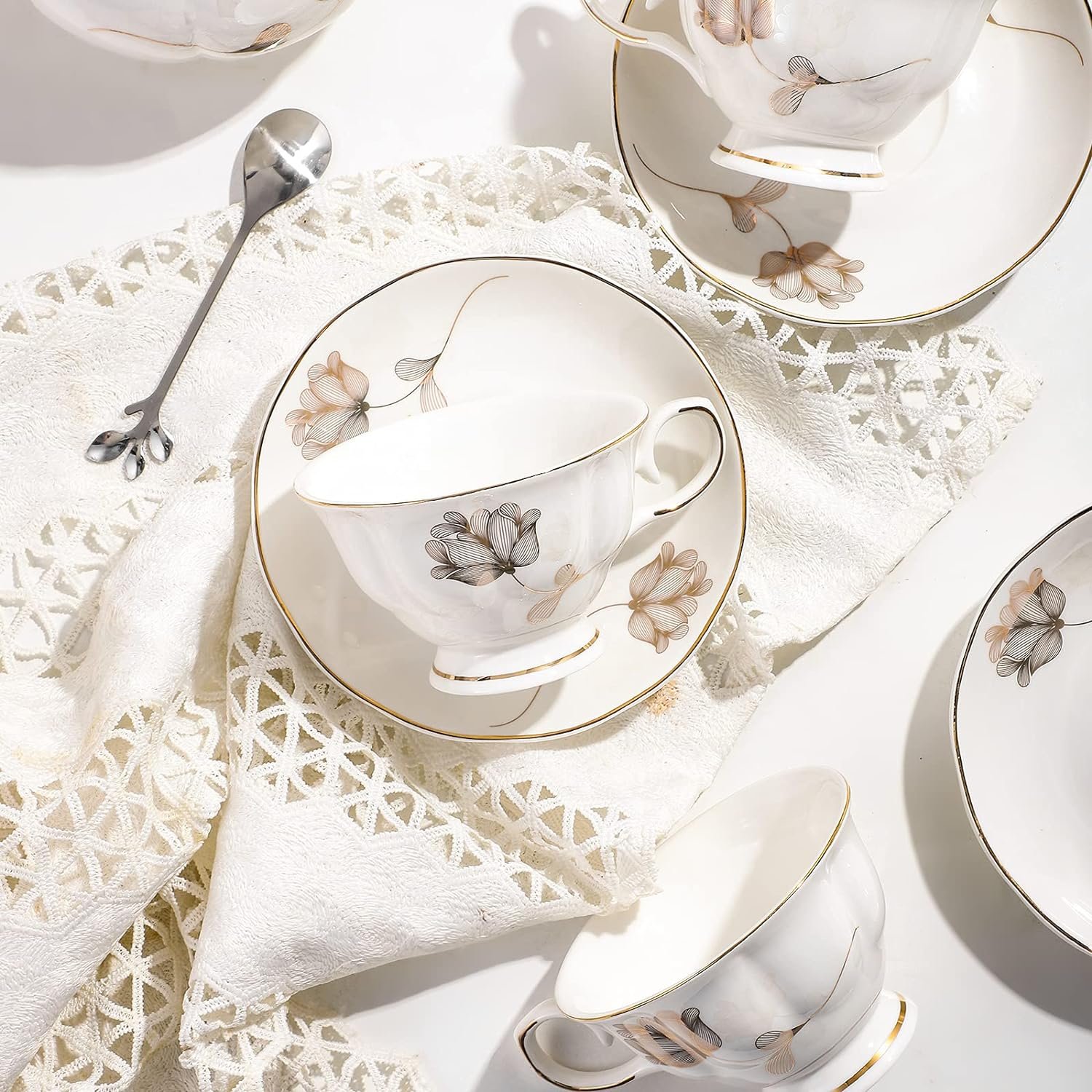 Fit Most Drinks: Whether it’s a cold drink or a hot drink, tea sets for adults can serve you well, the smooth surface will not scratch your skin, and add a little elegance and beauty to your home while enjoying the drink; It can be cleaned in a dishwasher, but the cleaning time should not be too long as the pattern may be easily scratched.