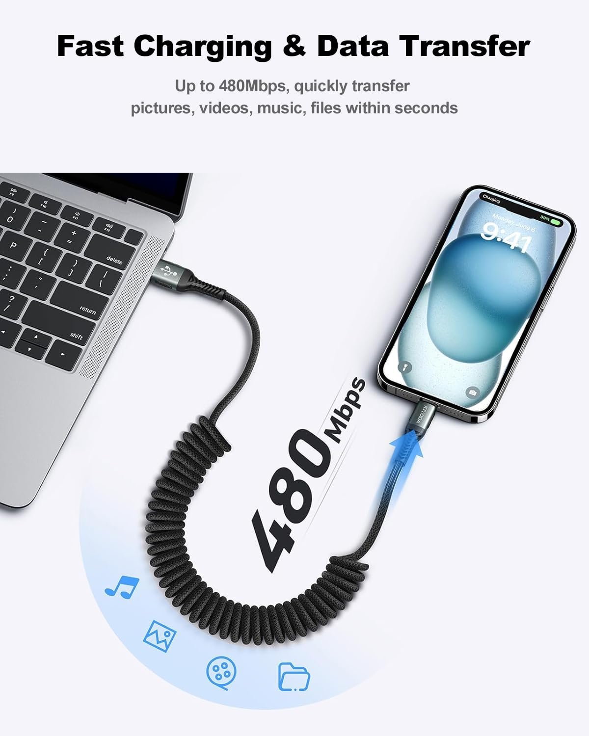 What a Surprising but Cool Design and Value Proposition! WARNING: THIS CABLE IS “COILED”!I didn’t read carefully when I ordered this item; all I saw was that it is 3ft. and braided. To my surprise, I noticed it is coiled when I pulled it out of the box packaging.But guess what? As I played with it and tested it out, the coil design is actually pretty cool.Look closely at the picture of the cable. The coiled portion is about 6” and the two straight ends with the USB-A / USB-C connectors are about 5” each. This means the cable is about 16” end-to-end BEFORE extending it. That is enough length for most situations. If you need to pull/uncoil/extend it, the cable can extend out to a total of 3-4 feet. The best part? When down, the cable automatically coils/springs back to its original state. How cool is that?This coiled feature means no tangling or knotting and less clutter. The other benefit of the coiled design is the ease of use, storage, and carrying around. which makes it easy to use and carry around, and much less space being taken.I have Apple CarPlay and it is fully compatible for charging and connecting purposes - results should be similar with Android Auto - with fast charging and dataFinally, the braided cable has the feel/look of high-quality nylon, which features better flexibility, wear resistance, stretching, rebound action, and long-lasting elasticity. The 66W capability also allows for faster connections and charging. This is the best value for the $$$ in my opinion!