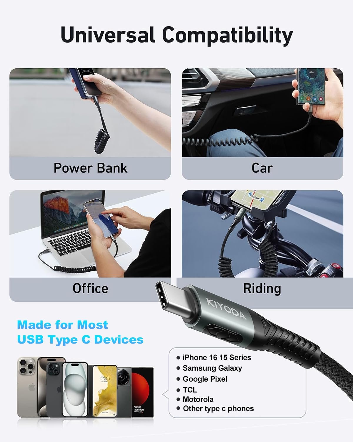 9 reviews for Coiled USB A to USB C Cable 6FT, 2Pack USB C Cables for Car, USB to USB C 66W Fast Charging Upgraded Amazing Durable Braided USB C Cable for iPhone 17 16 15/Pro Max/Plus, Samsung Galaxy S10 and More
