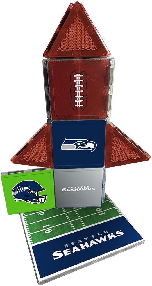 CreateOn Seattle Seahawks NFL Fan-Tiles Magnetic Match-Up Tiles | 17-Piece Building Set for Kids & Adults | Officially Licensed NFL Team Collectibles | Build, Play & Display (All Teams Available)