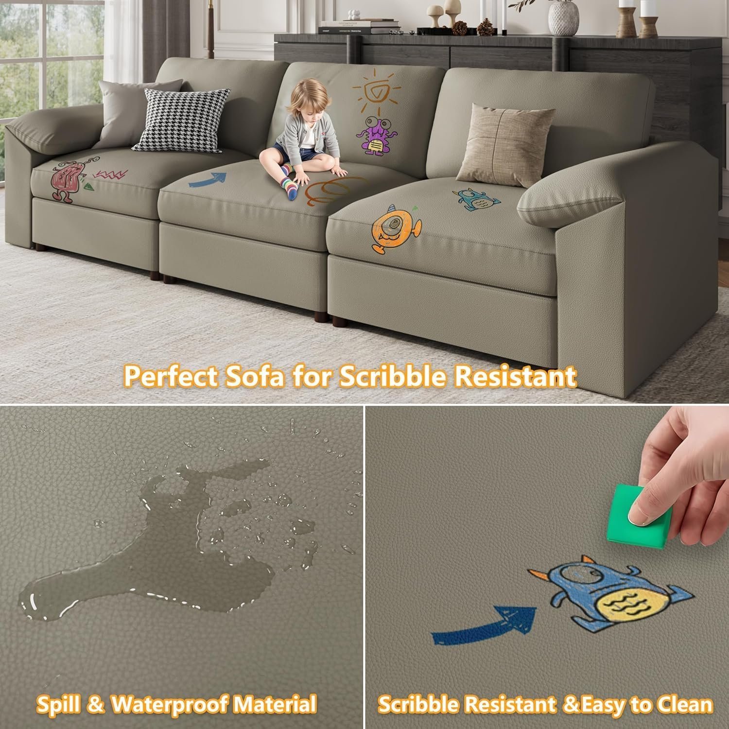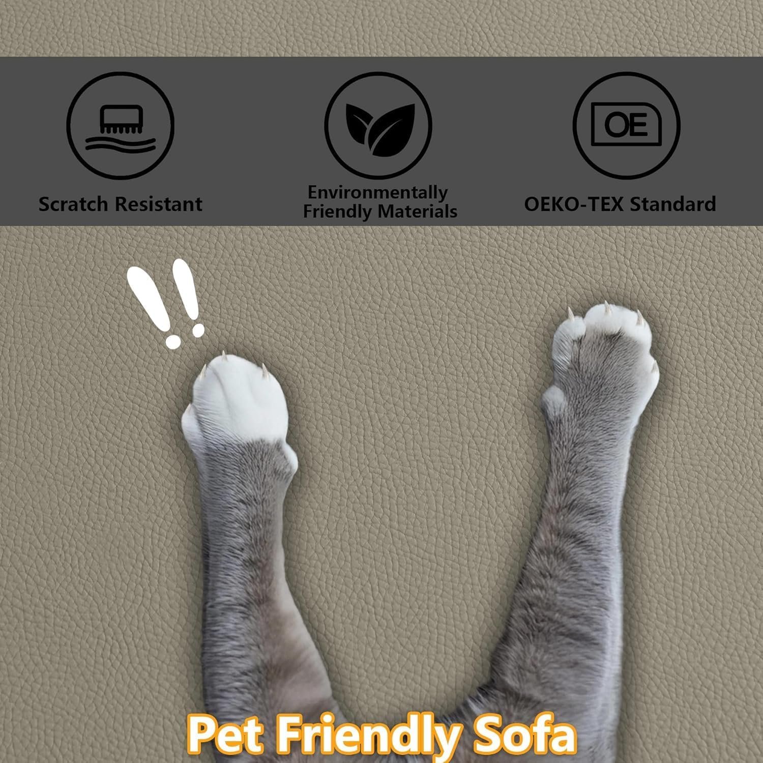 Pet Friendly Faux Leather Material: This faux leather material is not only waterproof, but also has the most important feature of scratch resistance.After testing, if the claws of cats and dogs are not very sharp and do not scratch repeatedly, there will be no damage to the material, which is also very suitable for families with pets. In addition,this EASE MOOSE modular sectional sofa is made of environmentally friendly material and is OEKO-TEX standard certified, which is free of harmful substances such as formaldehyde.
