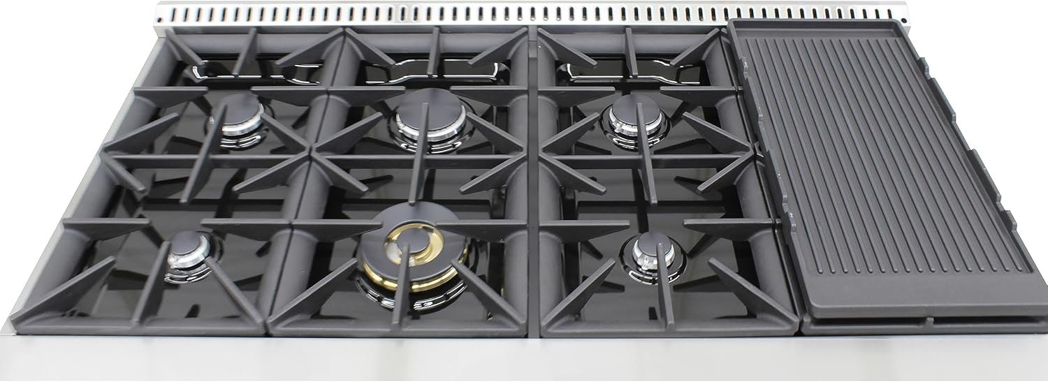 6 reviews for Gas Range Cooktop, 48-Inch with Double Porcelain Convection Oven and Broil Function, 8 Sealed Burners Continuous Grates with Stainless Steel Construction, 6.7-Cu.Ft, Metallic