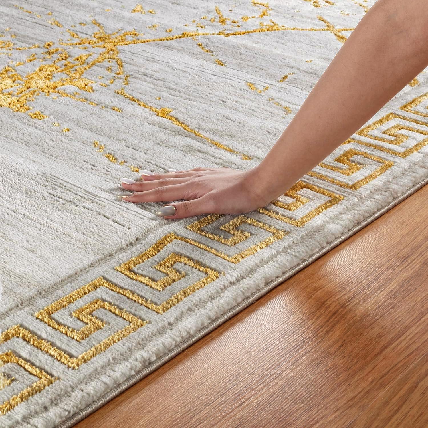 8 reviews for GLORY RUGS Area Rugs Marble 5X7 Cream Gold Carpet Modern Abstract Rug Living Room Dining Bedroom Rug