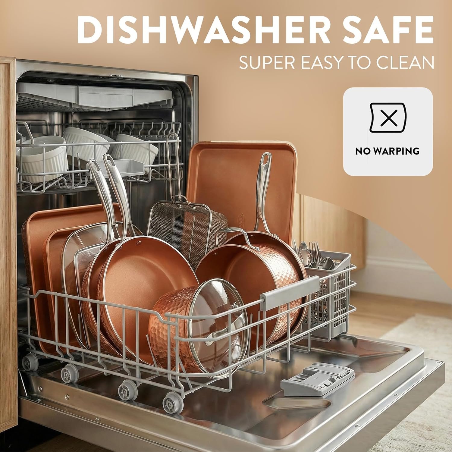 EFFORTLESS CLEANUPS, DISHWASHER SAFE: Spend less time with cleanup! After all the cooking and prepping is done, place cookware in the dishwasher for quick and easy cleanup.