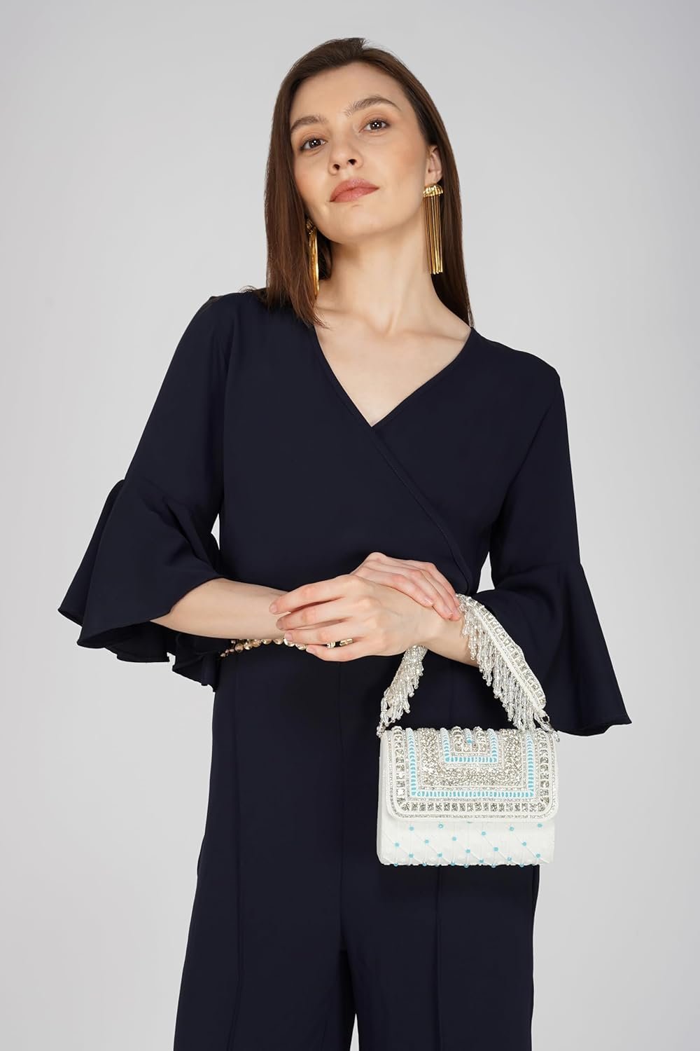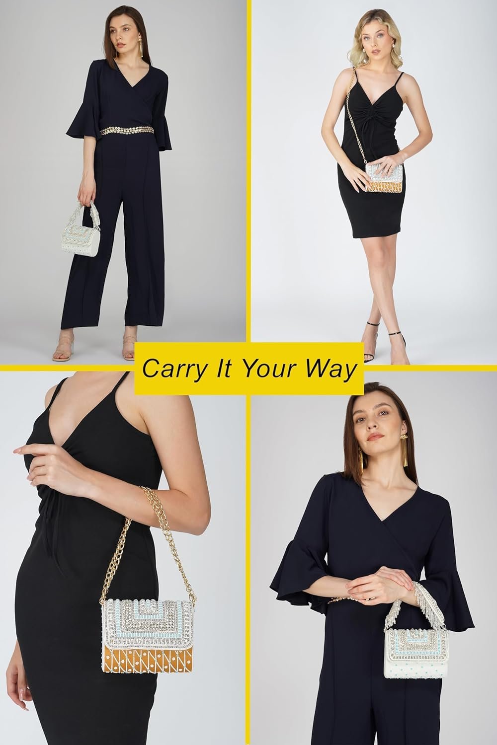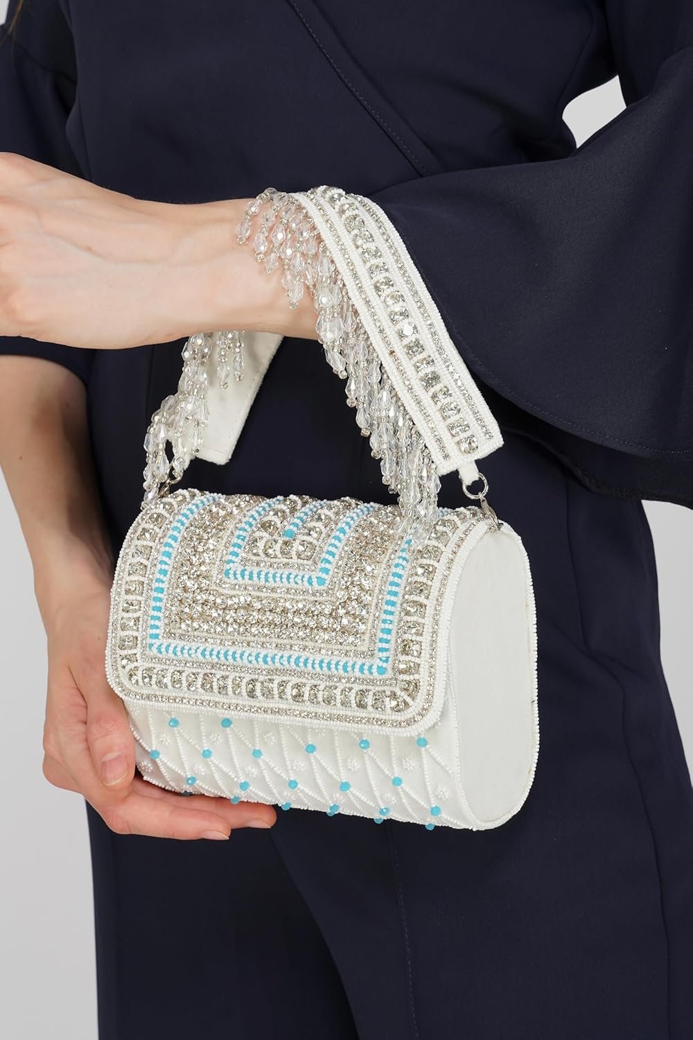 Handmade Beaded Crystal Evening Clutch with Magnetic Flap Closure for Women | Handcrafted Beaded, Crystal Embellished, Magnetic Flap Close, Lightweight Design, Fits Phone & Cards, Party & Wedding Use