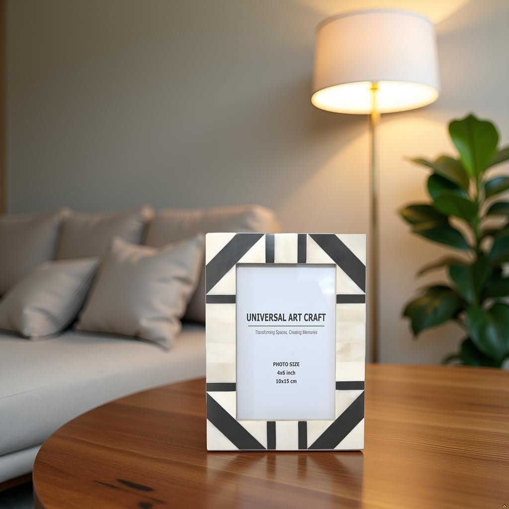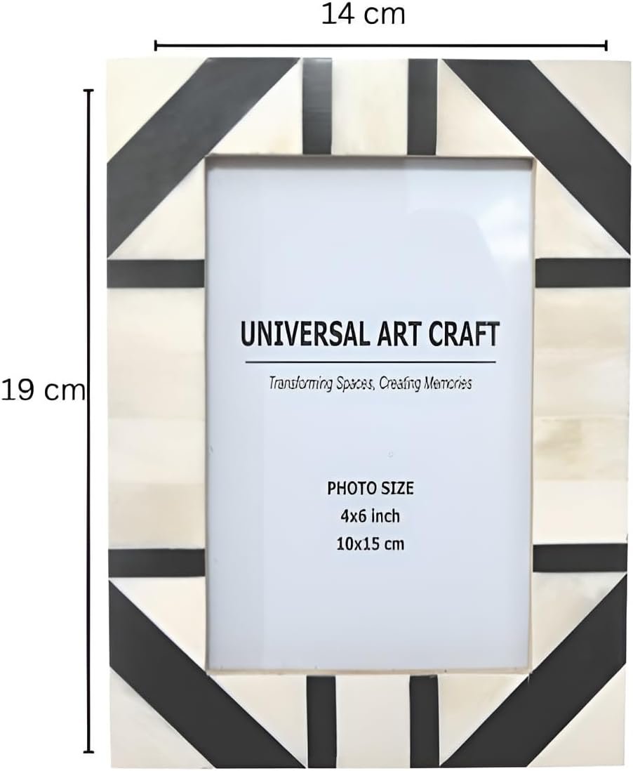 Handmade Handmade Bone Inlay Picture Frame 4×6 Inch | White & Gray Geometric Design | Tabletop Photo Frame for Home Decor