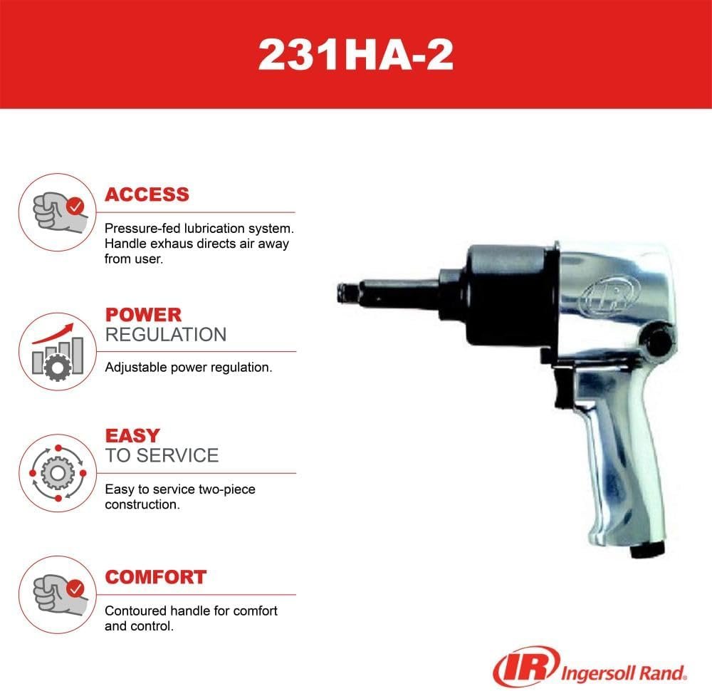 Ingersoll Rand 231HA-2 1/2″ Air Impact Wrench, 2″ Ext Anvil, Super Duty, 600 ft-lb Torque, Friction Ring Retainer, Pistol