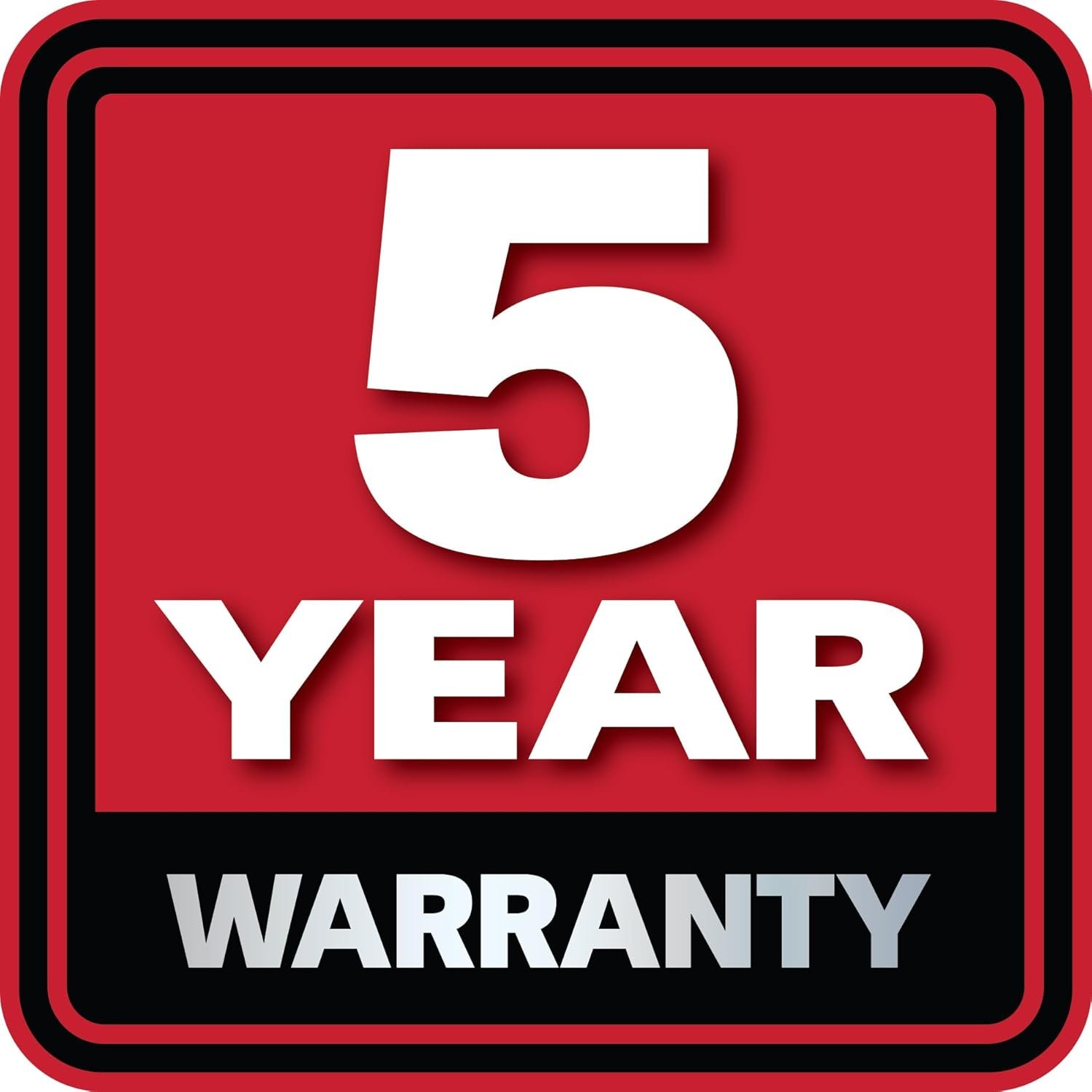 5-Year Warranty (if used for commercial or industrial purposes then defaults to a 2-Year Warranty) |
