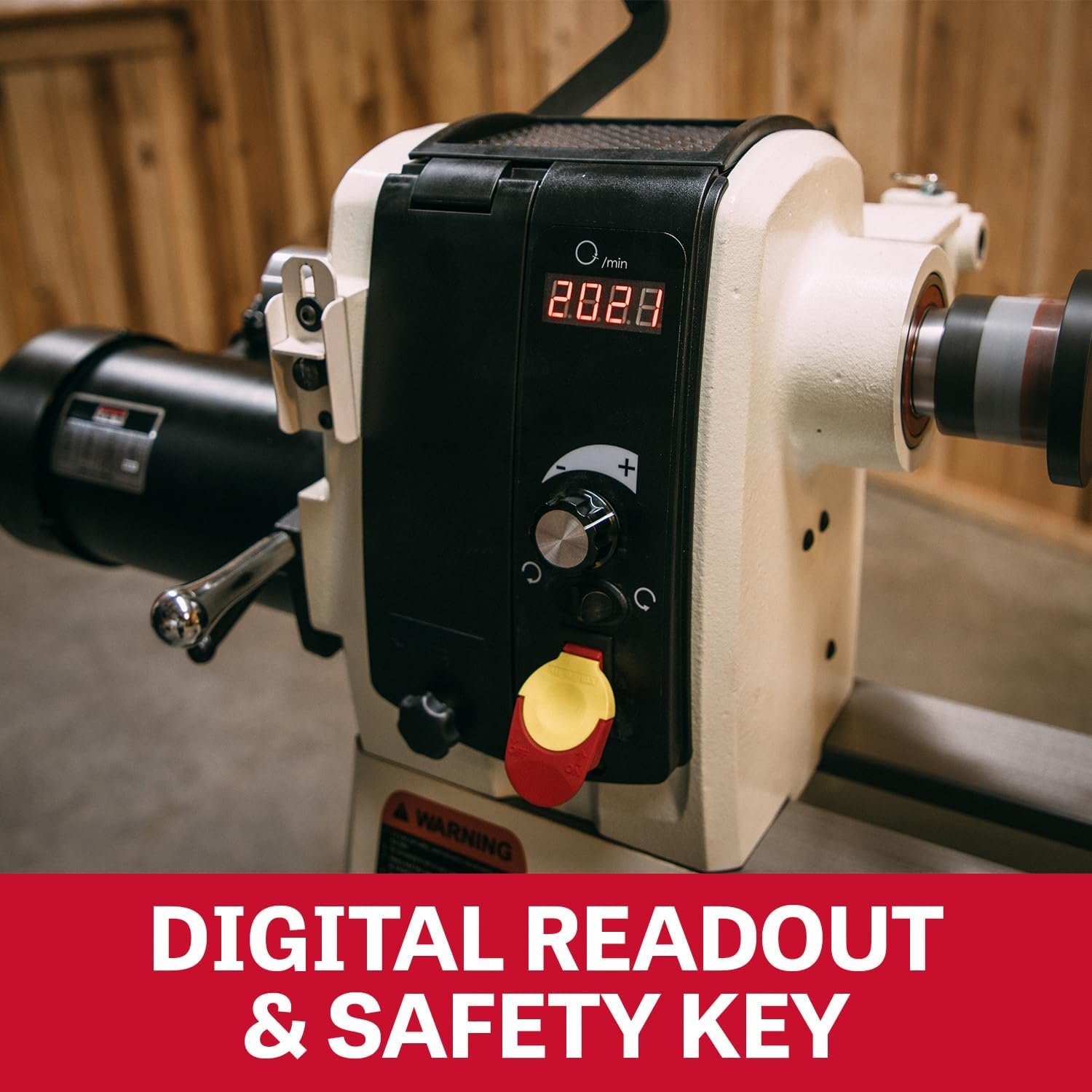 The JET 16″ x 40″ Electronic Variable Speed Woodworking Lathe is loaded with cutting-edge features that distinguishes it from others in its class. Included is a sliding headstock with a rubber tool mat, electronic infinitely variable speed from 40 to 3200 RPM, and a redesigned headstock locking handle accessible from front of lathe. Other features include a conveniently located digital readout and leg-mounted tool holder.