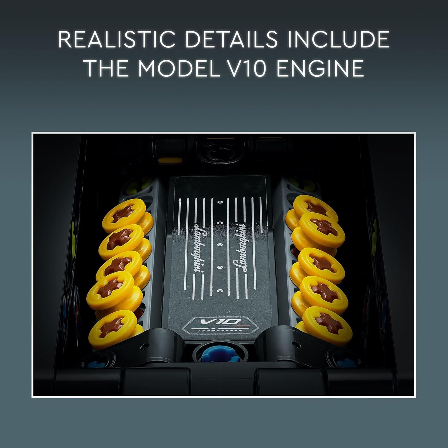 Admire the details – Kids can build and explore the moving V10 engine, steering and opening doors of this Lamborghini Huracán Tecnica model