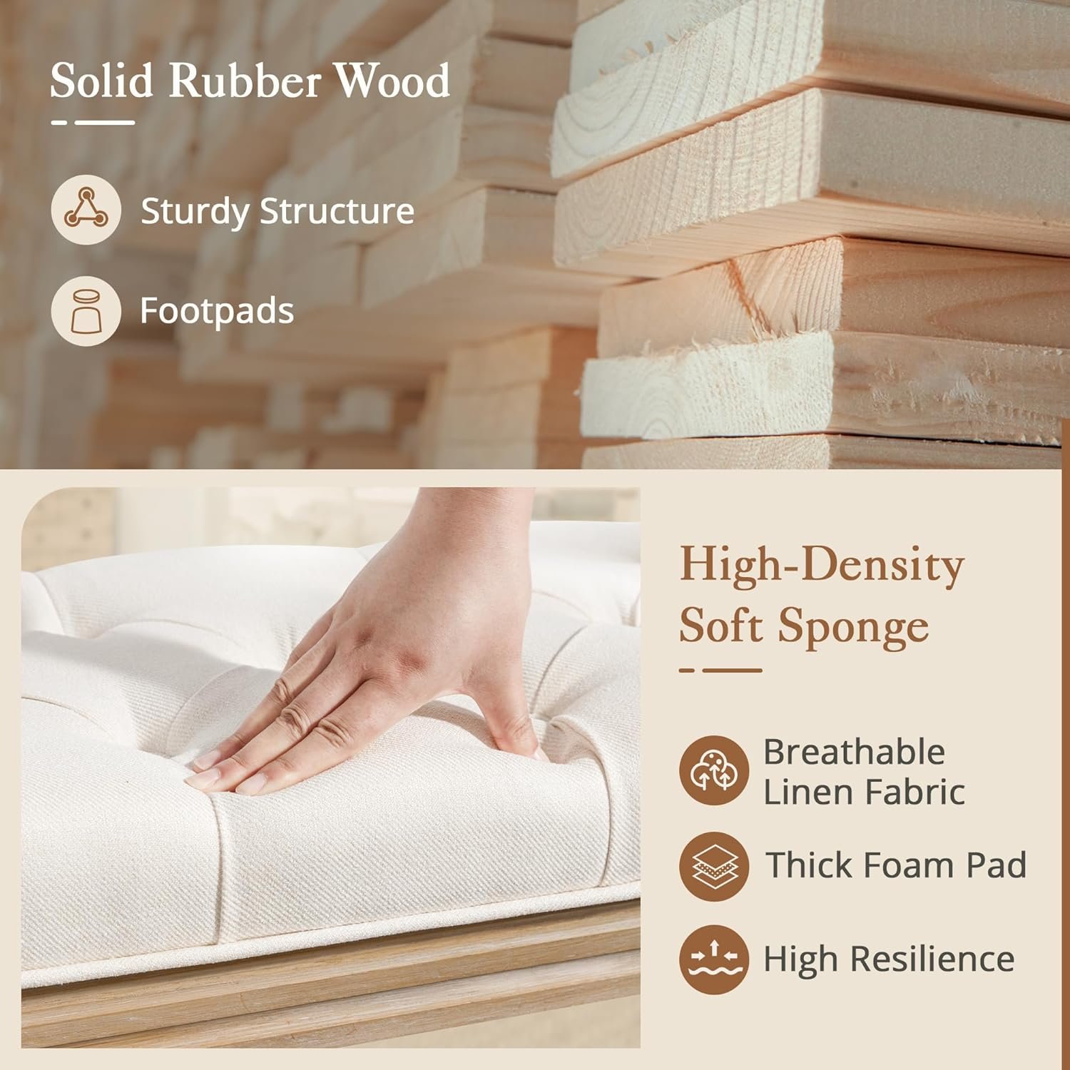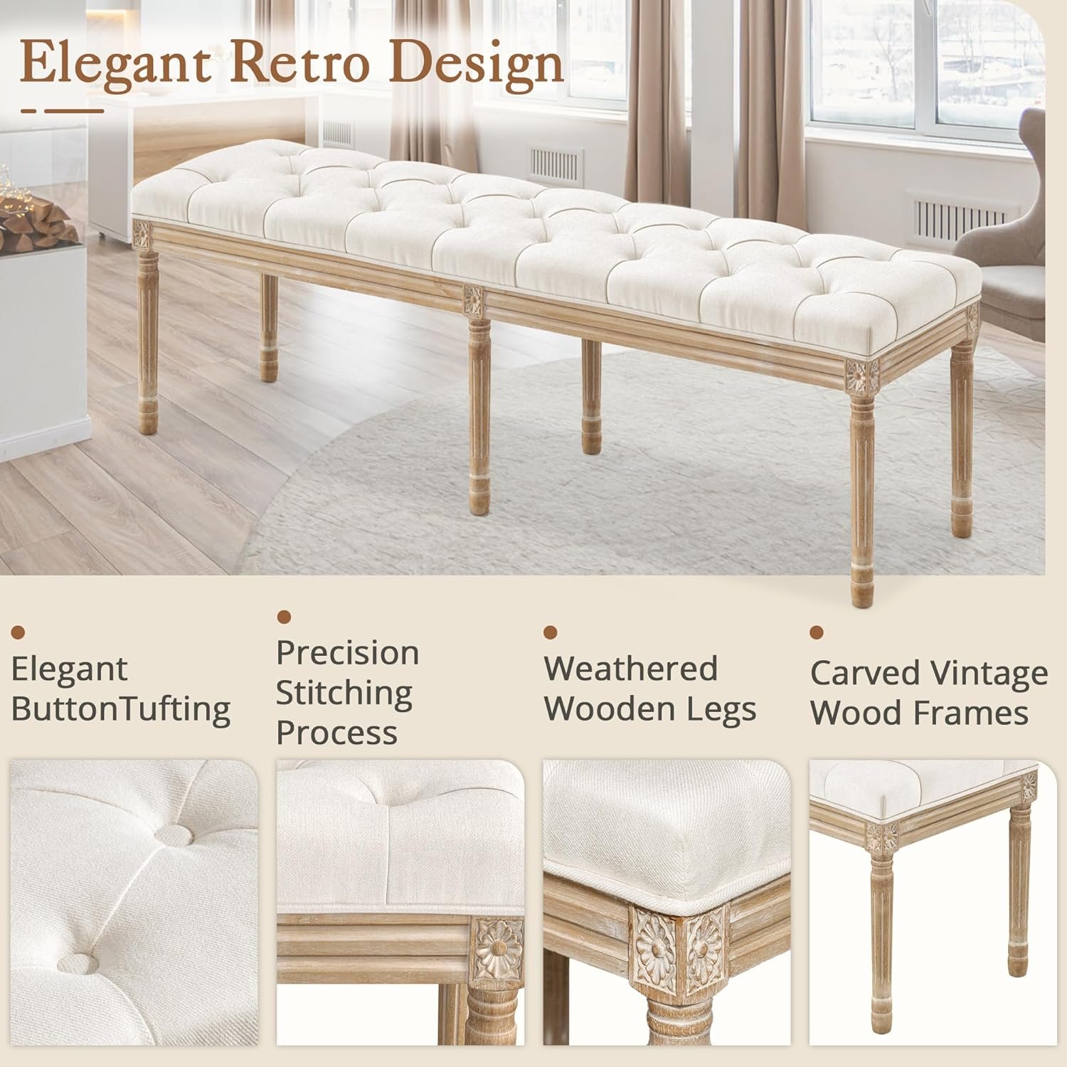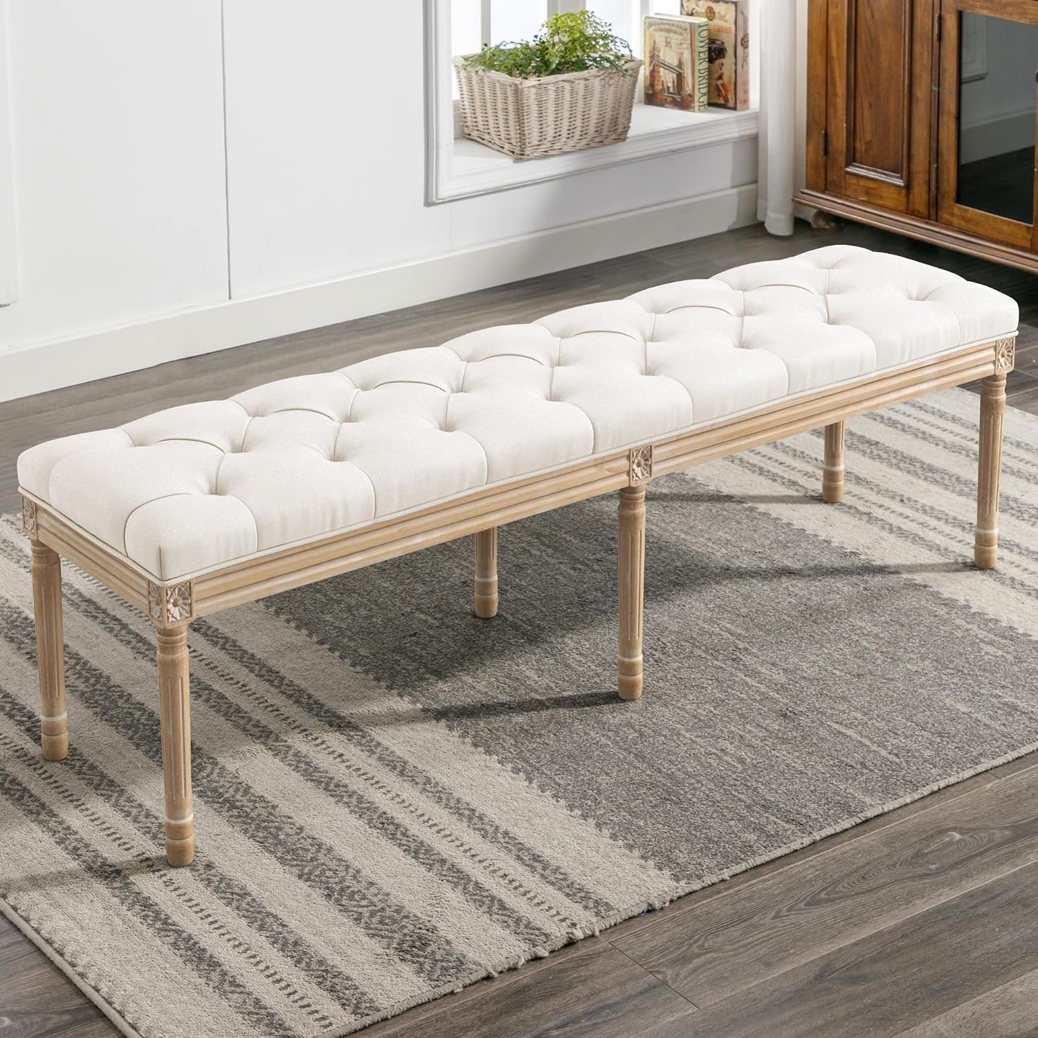 9 reviews for LUE BONA 60″ Fabric End of Bed Bench, Upholstered Tufted French Bedroom Bench with Carved Legs for Bedroom End of King Size Bed, Living Room, Beige