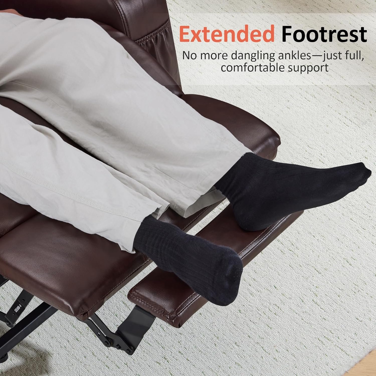 Cheap, operates clunky and not good for mobility challenged people, ironically I ordered this for my father-in-law who has dementia and mobility challenges. - he is 6'2" and very thin. He had a relatively new recliner that someone had give him a couple of years ago (God bless them), but it was beginning to wear and was getting uncomfortable since it was not an extended recliner for tall people. I took a chance and ordered it for him since it was supposed to be for tall people and it was a huge and expensive mistake. After it arrived in 3 boxes and we wrestled them into the house and assembled them, it looked ok, but when he sat it in immediately he hated it and since he has dementia he was really letting us know how unhappy he was. We added extra padding but he hated it even worse. We tried to get him to lay back and his feet were hanging off the end and it was hurting his back and boy did he look awkward! After a night's sleep, we thought we would try it again in the morning hoping he had kinda forgotten the night before and the discomfort was immediate and set off a bad morning. We used the boost pad under him to slide him up further in the recliner but if his feet are on the floor in the down position, he starts sliding forward on this recliner in a sitting position and then it started pulling at his back because of the huge gap it was creating. This model DOES NOT lay down, is uncomfortable, awkward and clunky. You are either up or you are down - everything moves in one motion and the foot rest and back does not operate independent of the up and down. NOT A GOOD RECLINER FOR ANYONE WHO HAS MOBILITY CHALLENGES and are unable to situate themselves. So, now we are "stuck" with this recliner and are on the hunt for another. Waste of resources all the way around.