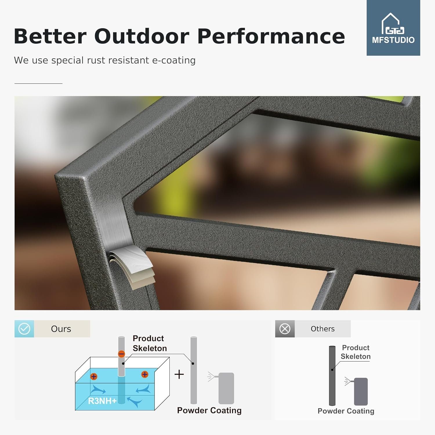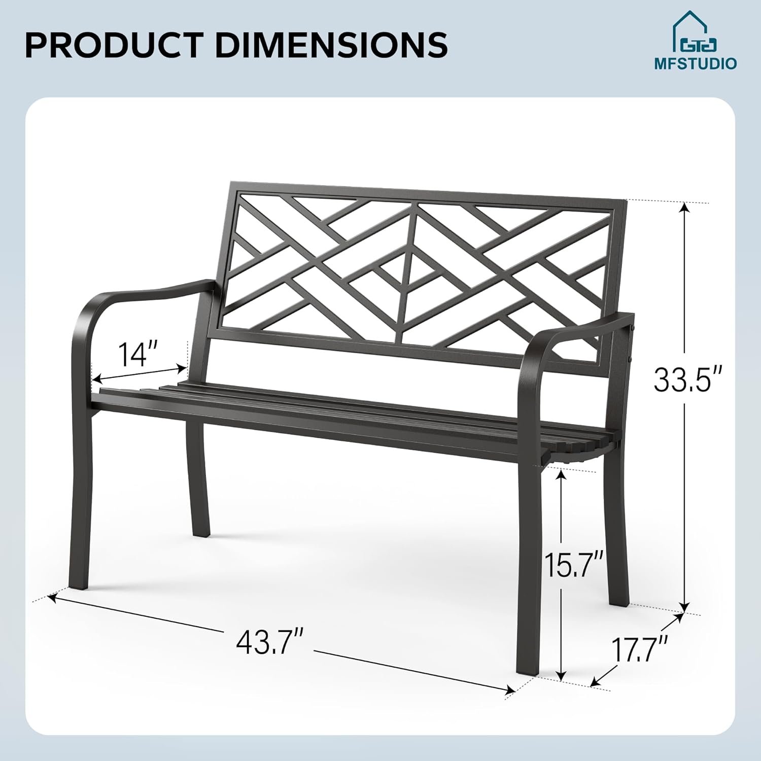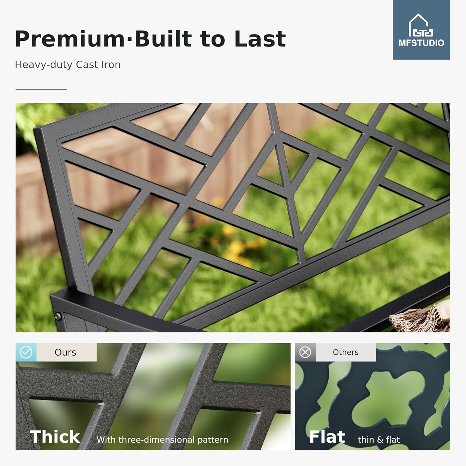 8 reviews for MFSTUDIO 43.7 Inches Outdoor Garden Bench, Cast Iron Metal Frame Patio Park Outside Benches with Geometric Pattern Backrest for Front Porch, Black