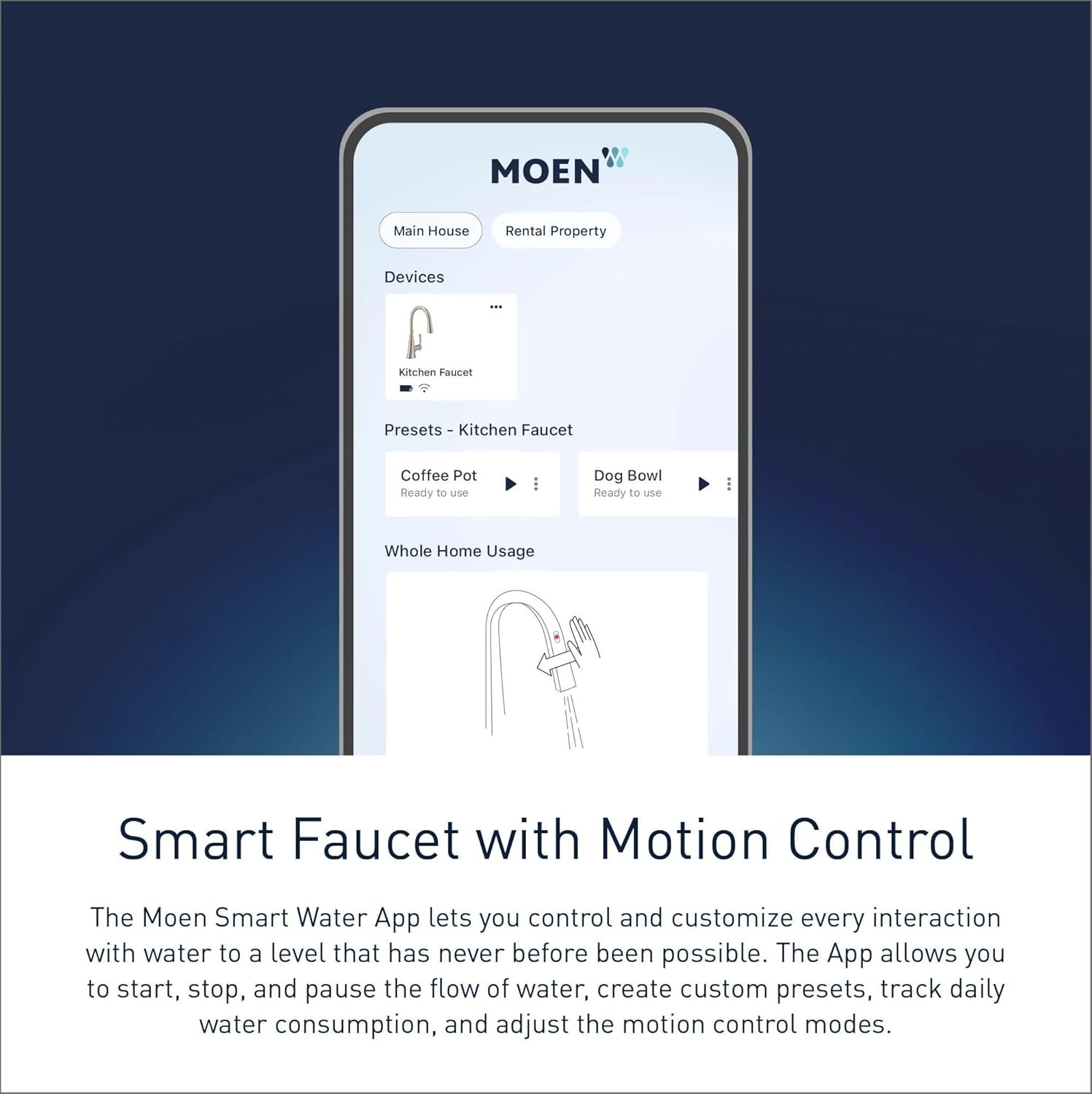 Imagine being able to turn your faucet on and off or select from cold, warm and hot temperatures just by waving your hand. The Moen Smart Faucet with Motion Control offers all the benefits of the Moen Smart Faucet – voice activation, app control and traditional handle control – plus the added convenience of motion control. Advanced sensor technology allows you to activate and adjust water flow with a simple wave of the hand.
