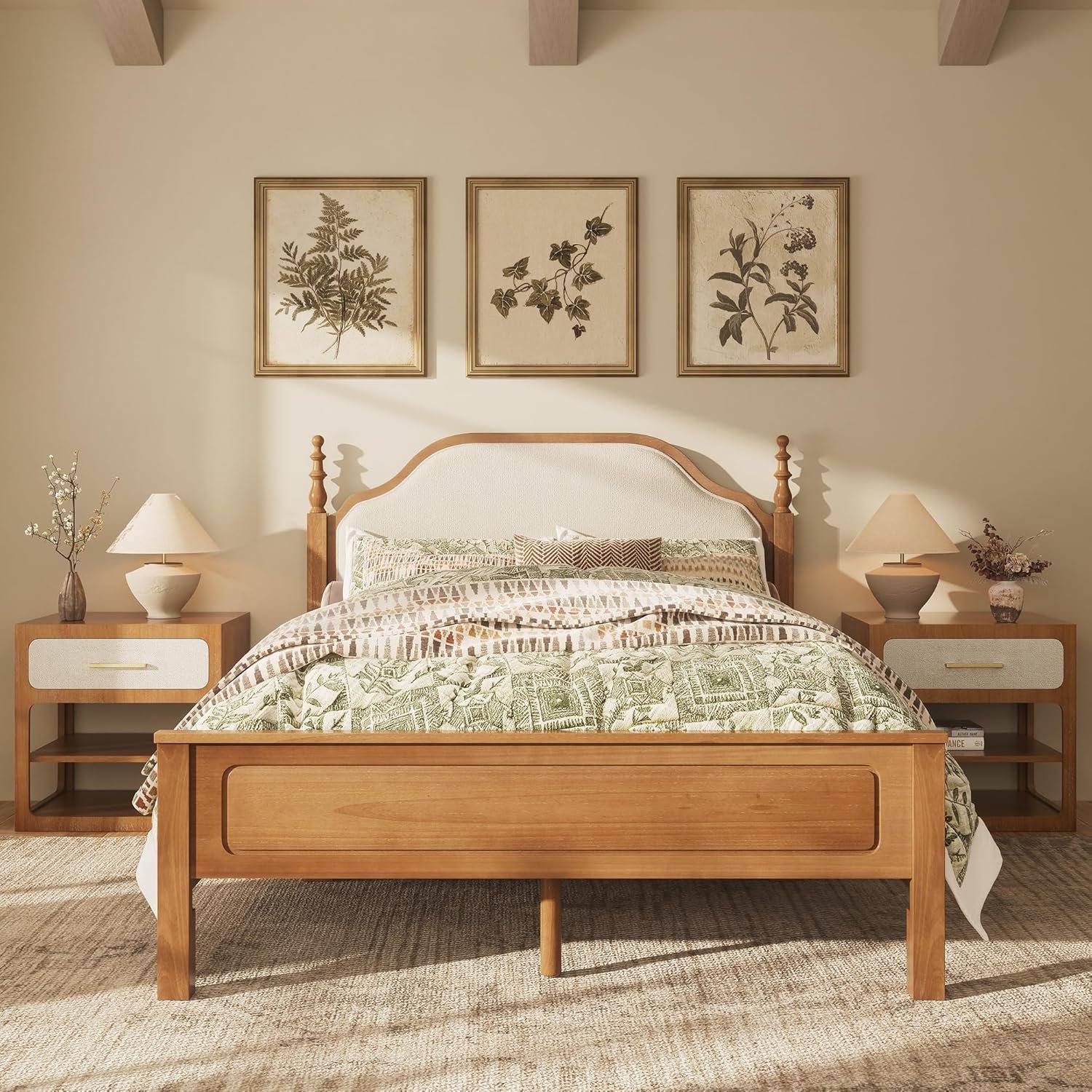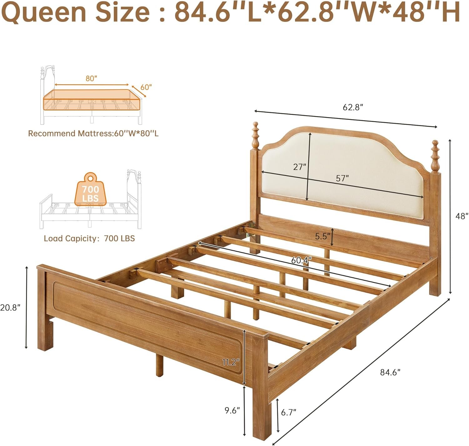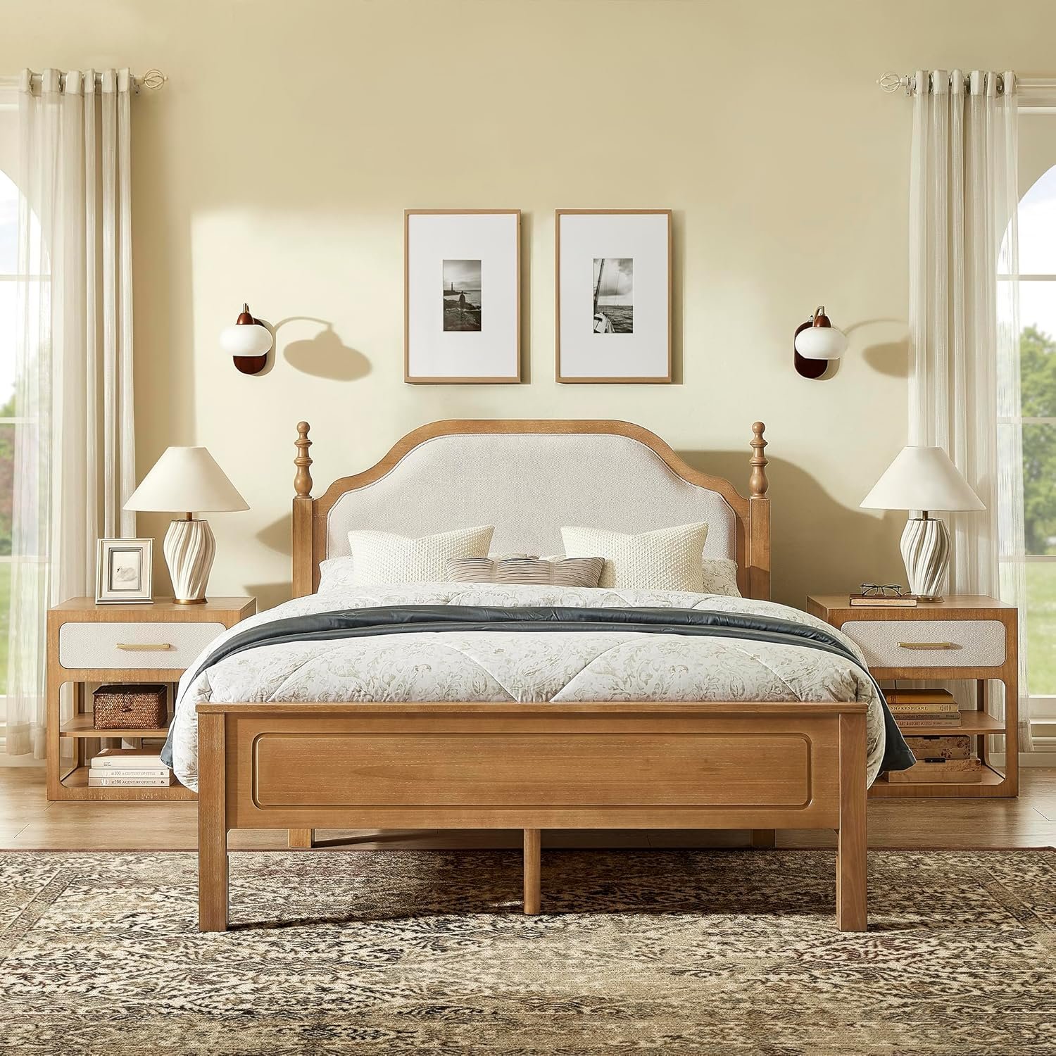 Two Style Options to Match Your Decor:Choose between a Dark wood frame with wheat upholstery for a classic, rustic charm, or a light brown wood frame with white upholstery for a cleaner, modern look. The light brown option features a specialized dust-paint finish for a authentic distressed effect.