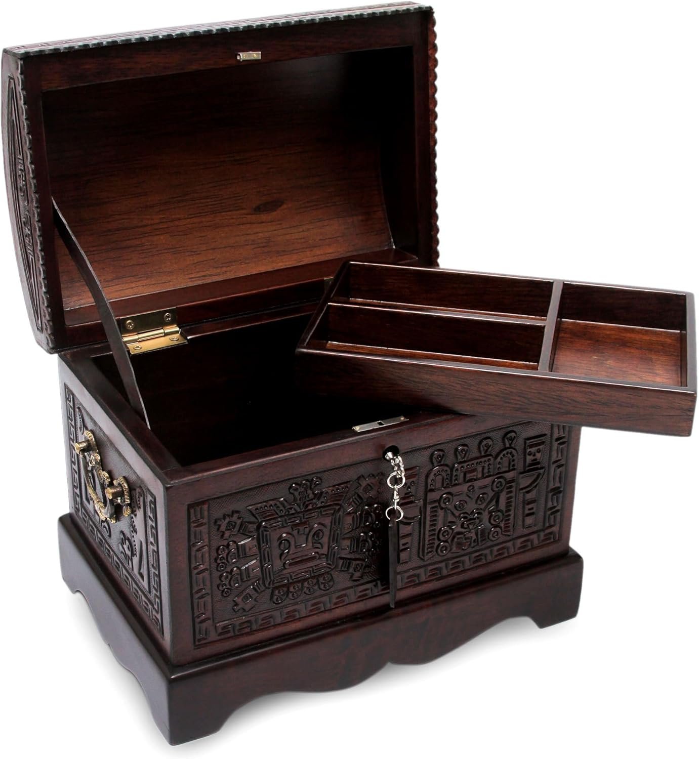 8 reviews for NOVICA Tooled Leather And Wood Handcrafted Treasure Chest Jewelry Box With Organizer Tray, ‘Inca Domain’