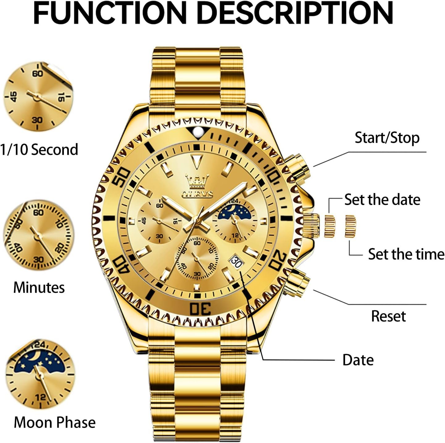 Amazing watch I have Thousands of dollars in my watch collection from Cartier to Movado and Seiko but this watch has been my every day watch since buying it. The chronograph operation and moon phase operation is flawless and dependable works great all the time. This watch is amazing for the money and should be in everyone's collection. Ive worn it dressed up and casual and receive compliments on it. Just buy it you won't be disappointed.