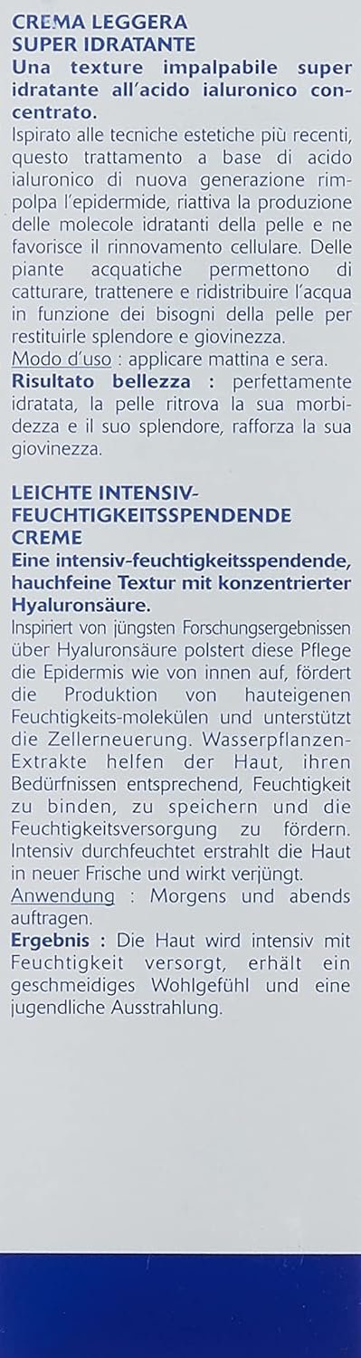 Hydration Complex of aquatic plants combined with a bio-mimetic active ingredient Intensely, ideally and lastingly moisturizes the skin: helps capture, retain and redistribute water according to the skin’s needs.
