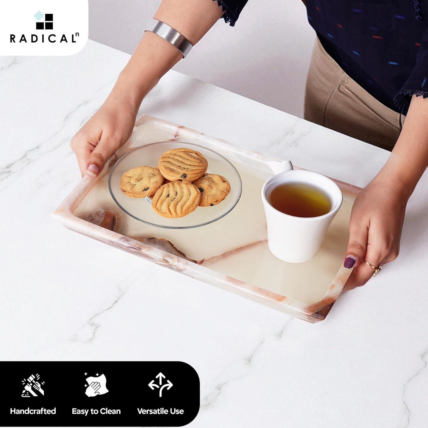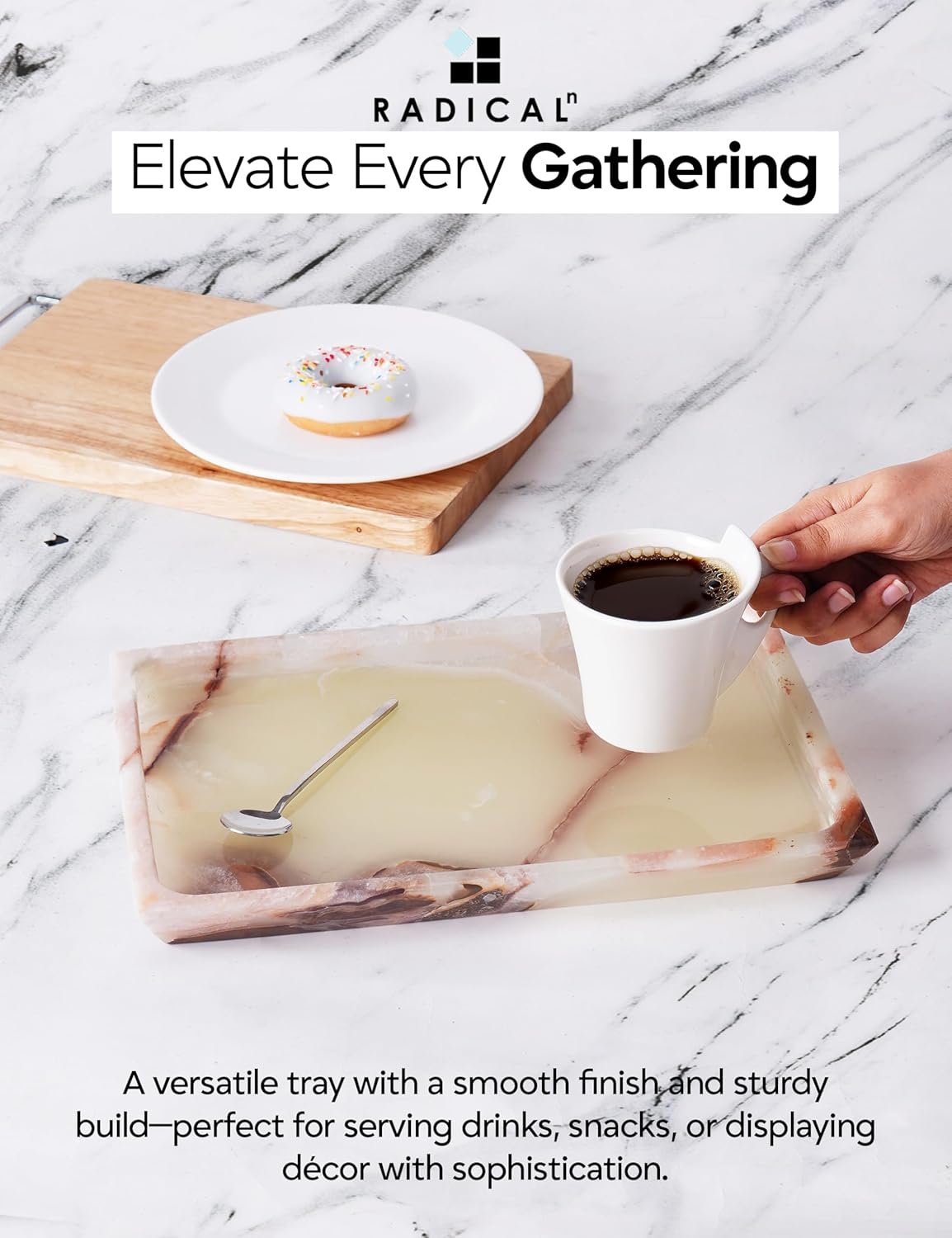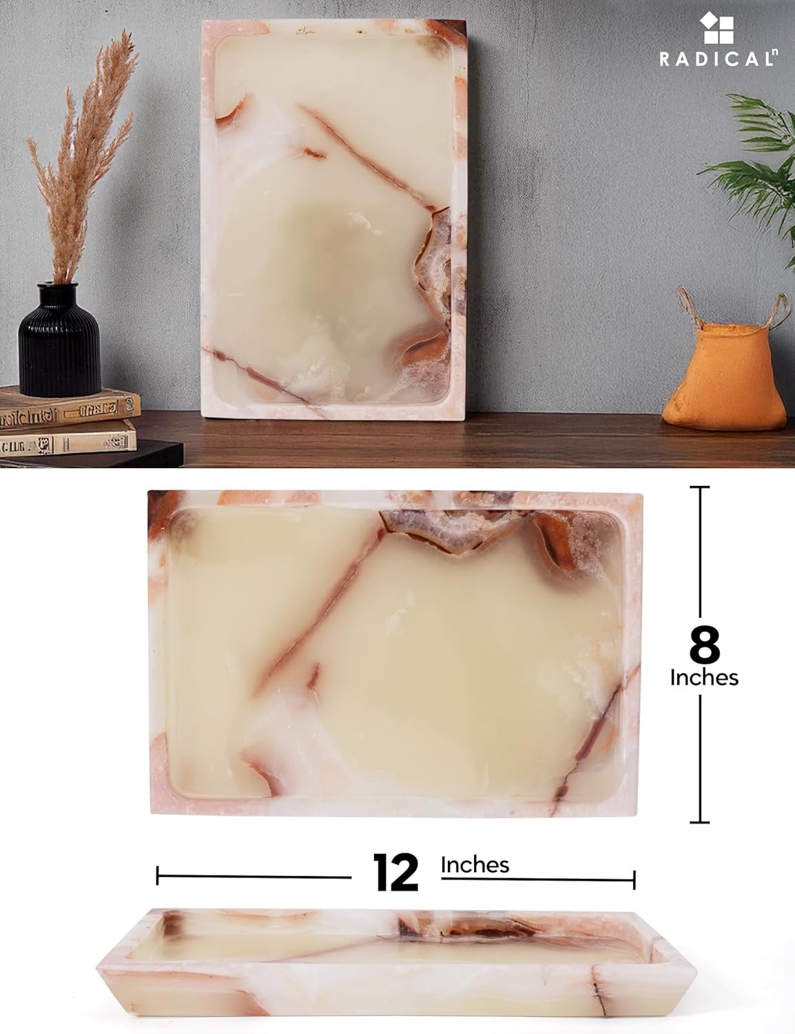 Radicaln Marble Rectangle Serving Tray 12″ Inches Handmade White Onyx Charcuterie Tray Dining Table, Ideal Candle Dish and Plate for Serving Platter