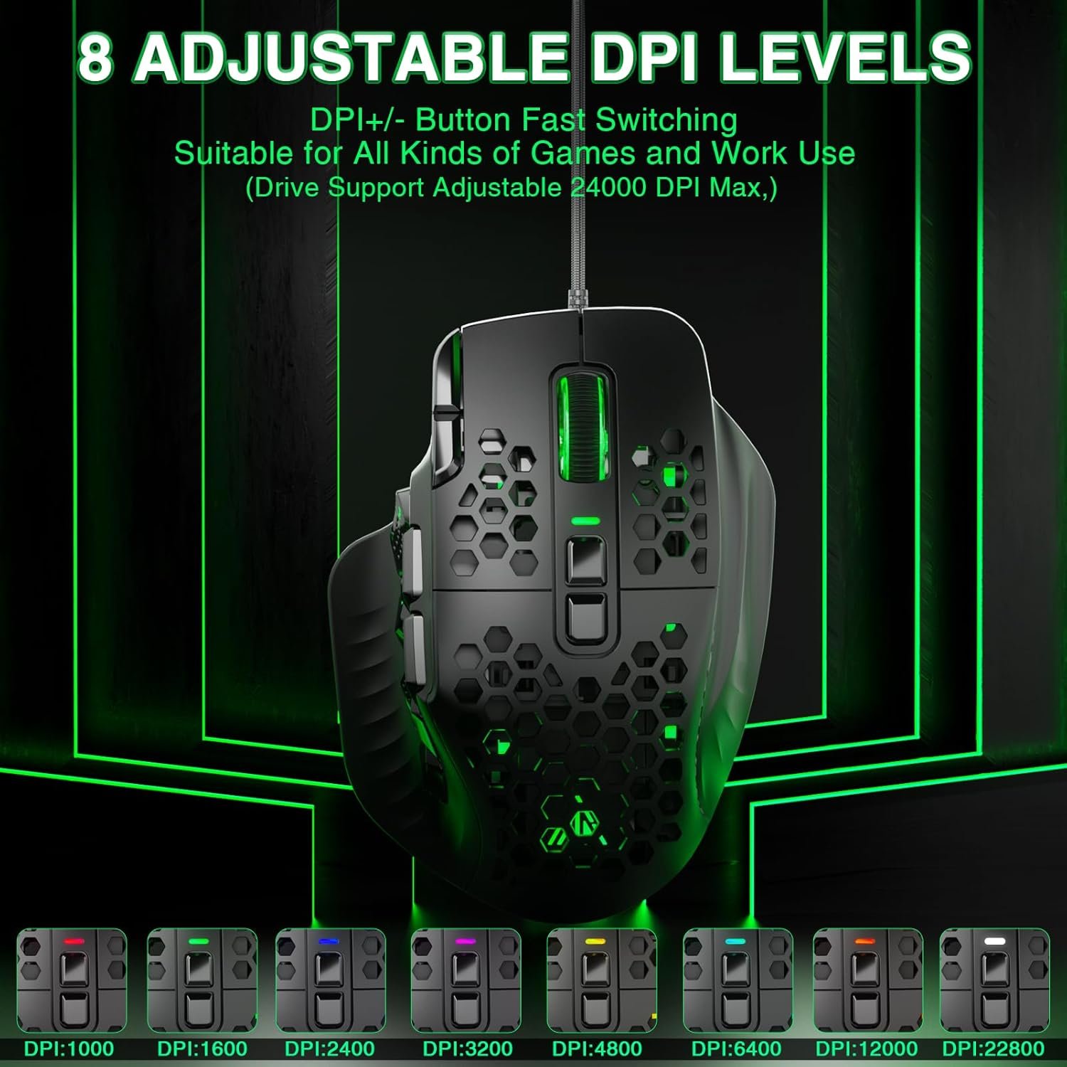 9 reviews for SOLAKAKA SM809 Gaming Mouse for MMO,24000 DPI,16 Programmable,RGB PC Gaming Mice,Black
